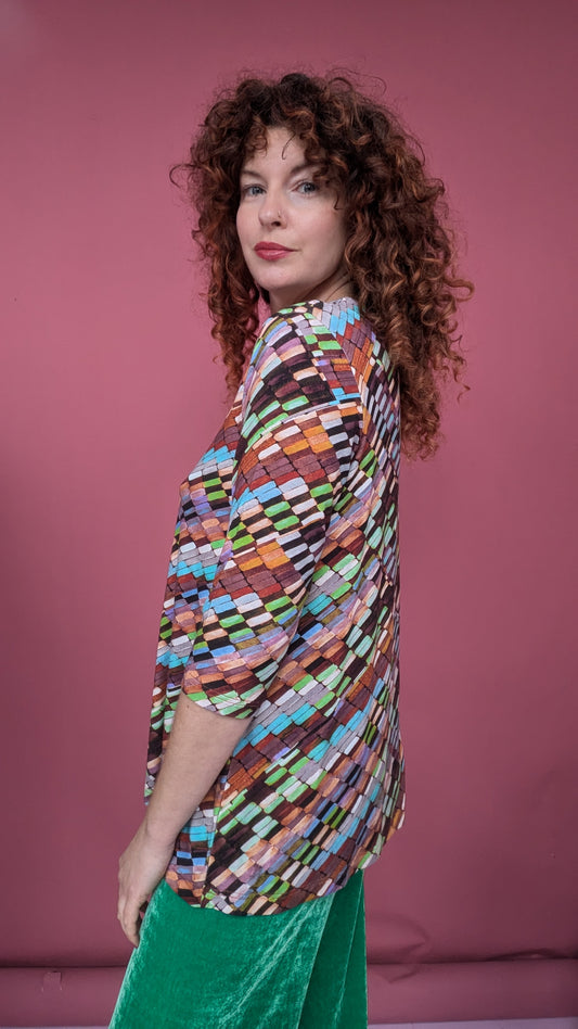 Long Sleeved Turtleneck in Green Cross Stitch Print