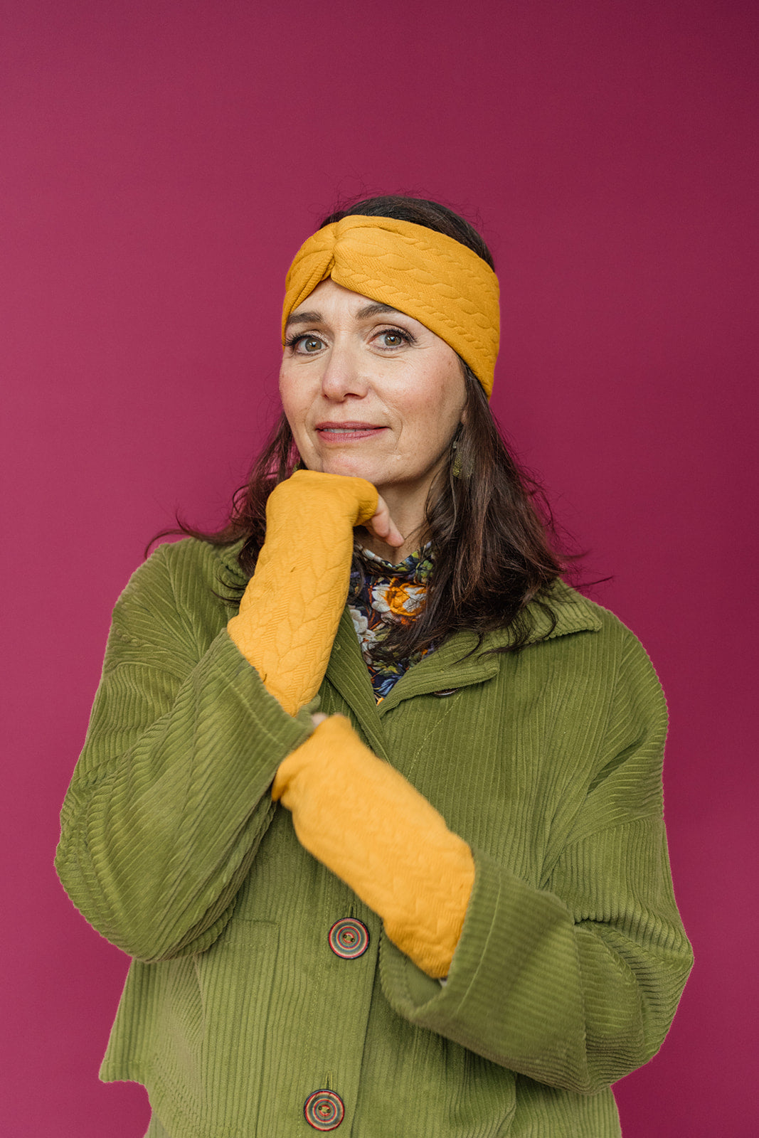 Cable Knit Jersey Wrist Warmers in Clover Green + 1 Colour