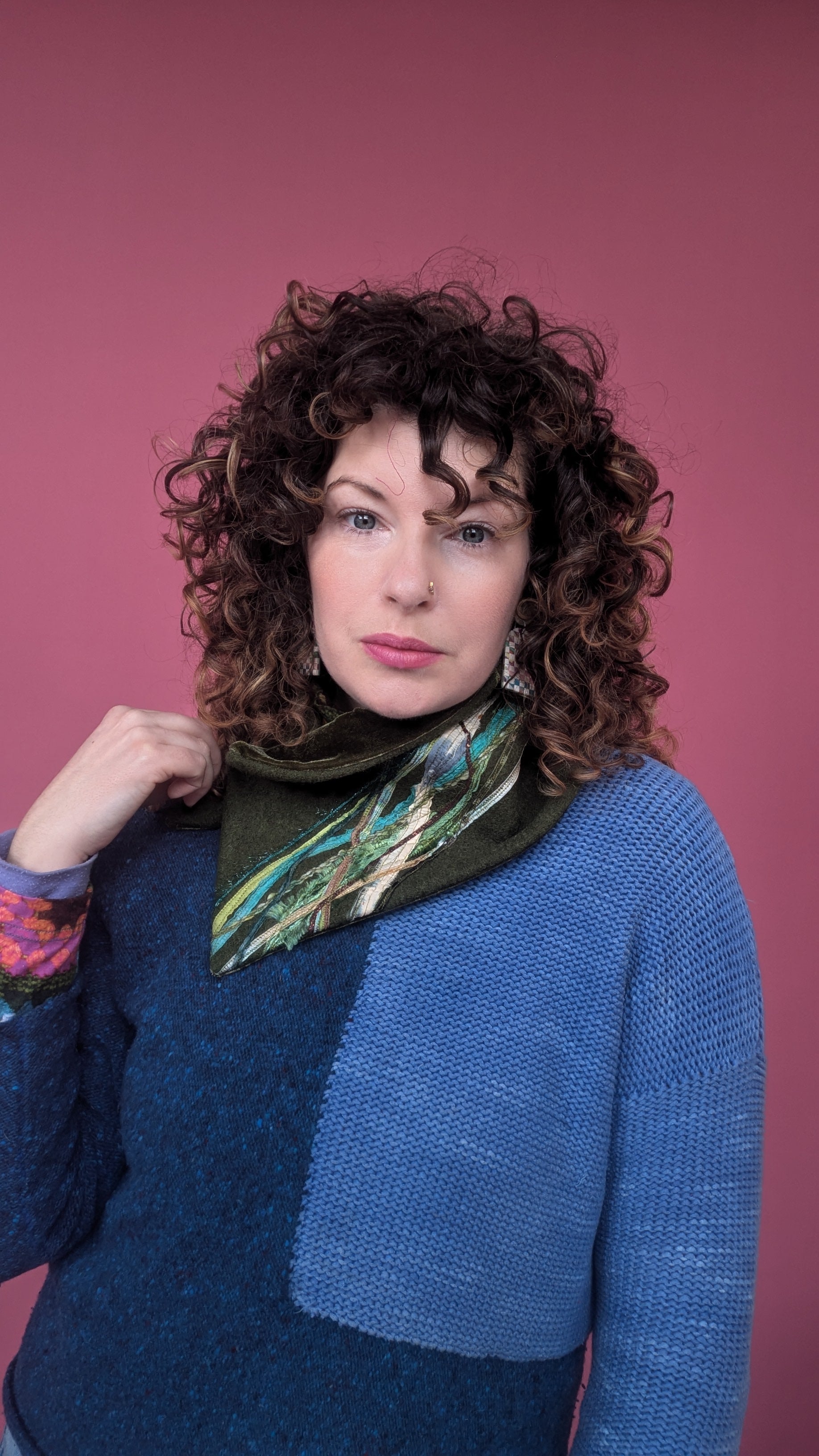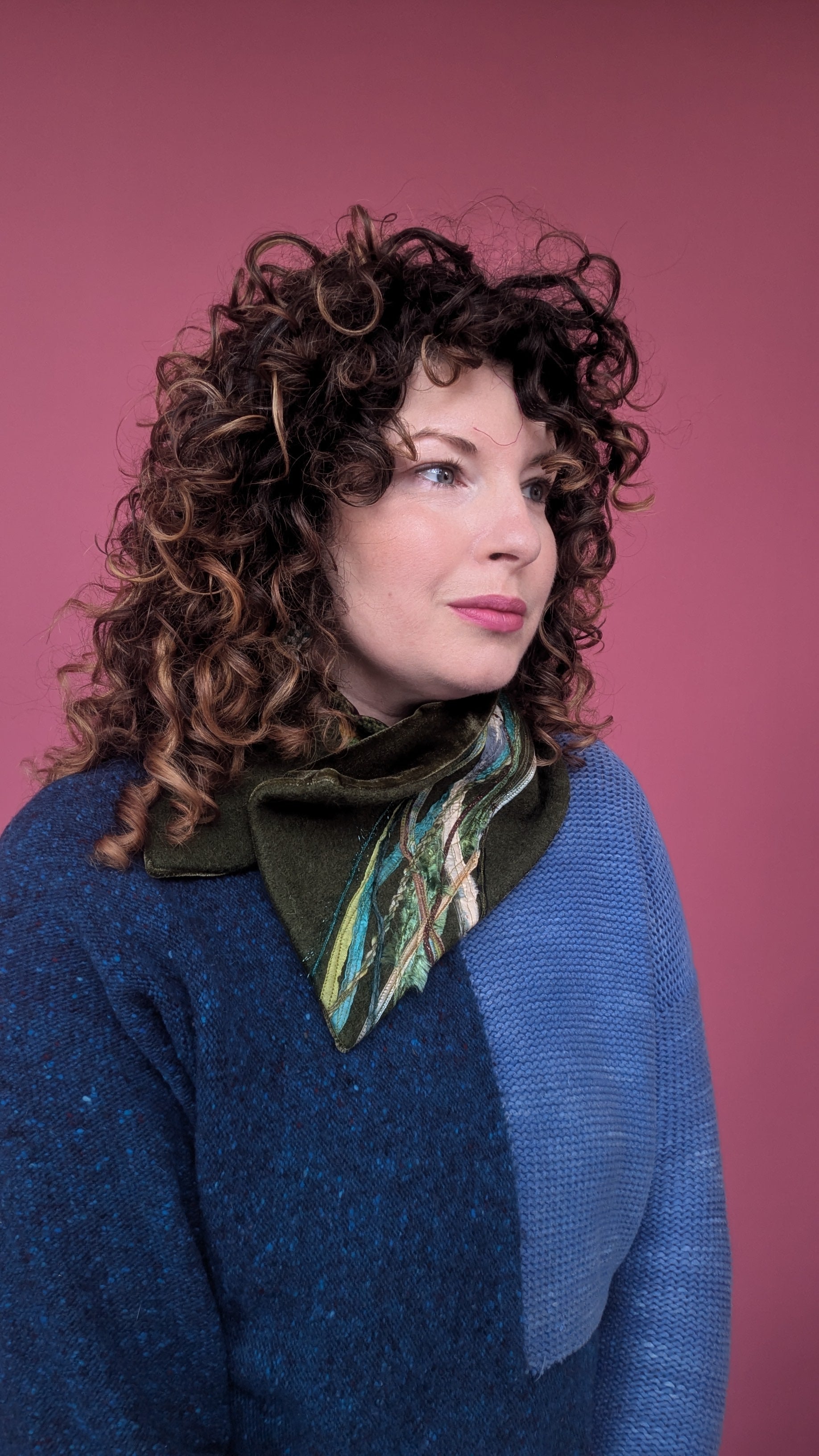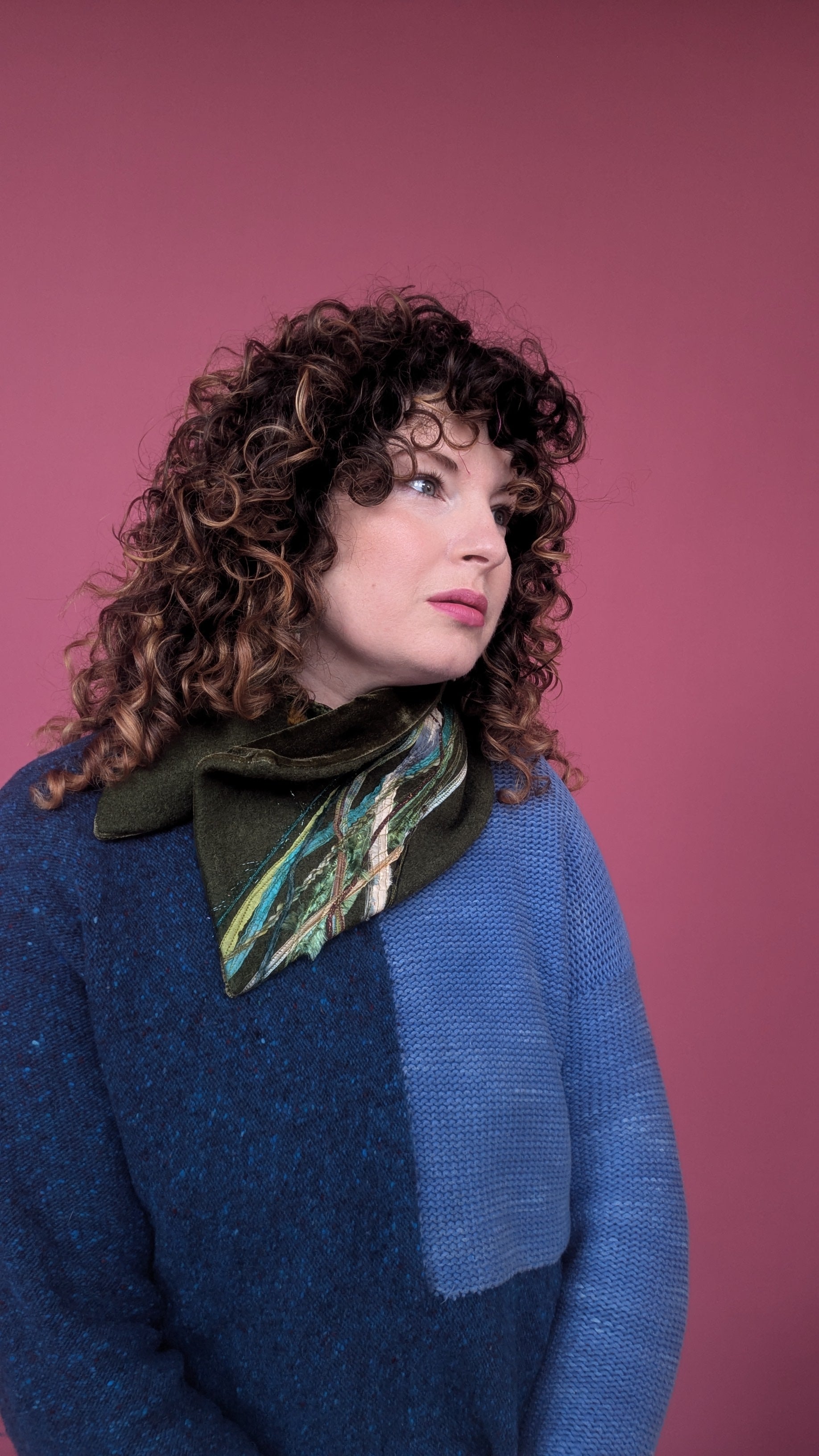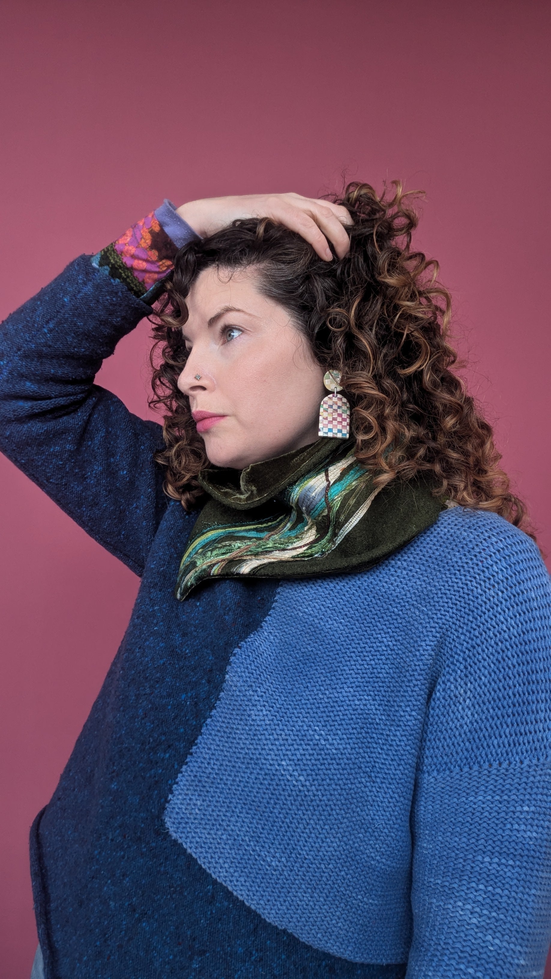 Embellished Wool & Velvet Neck Wrap in Forest Green
