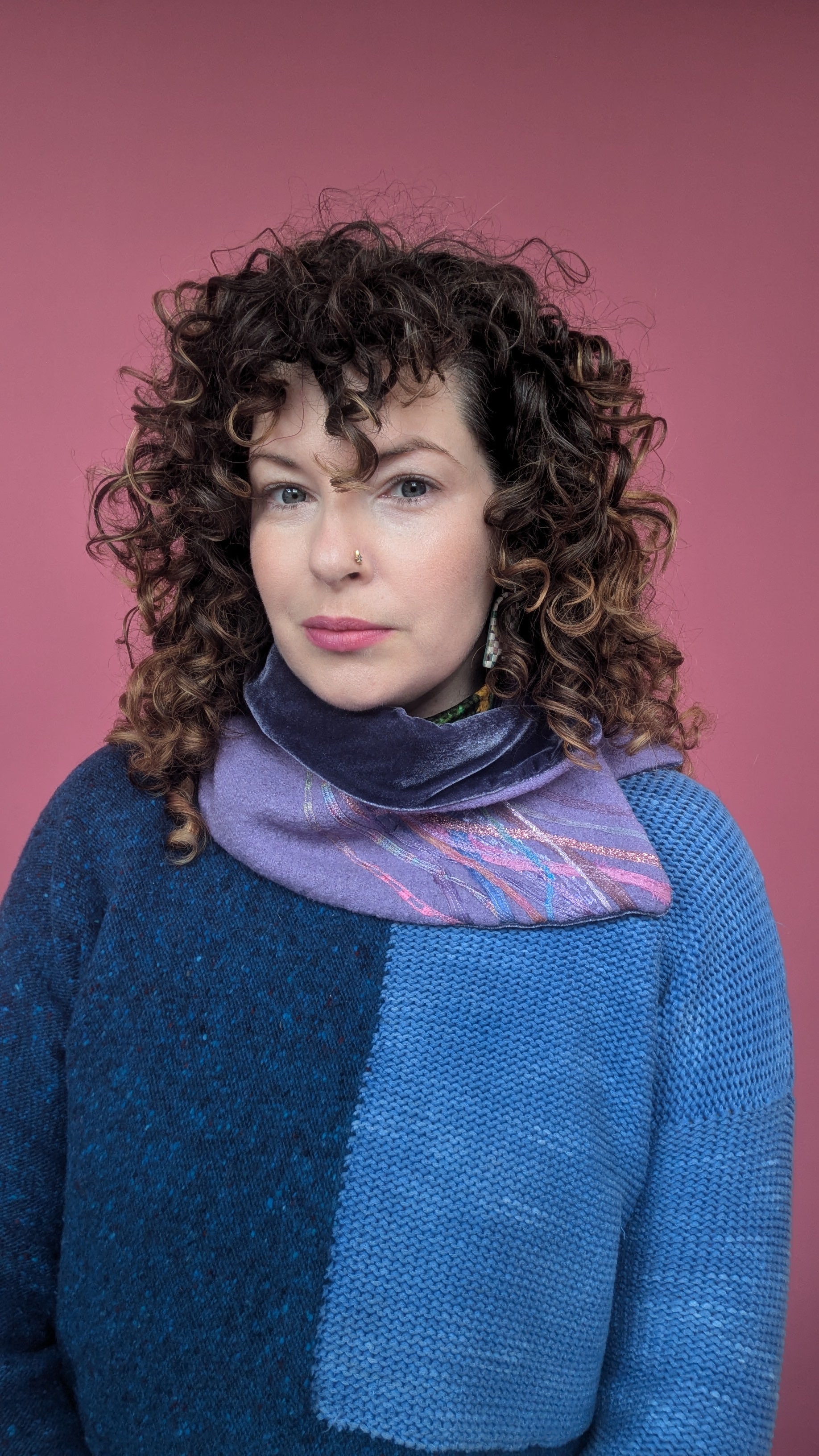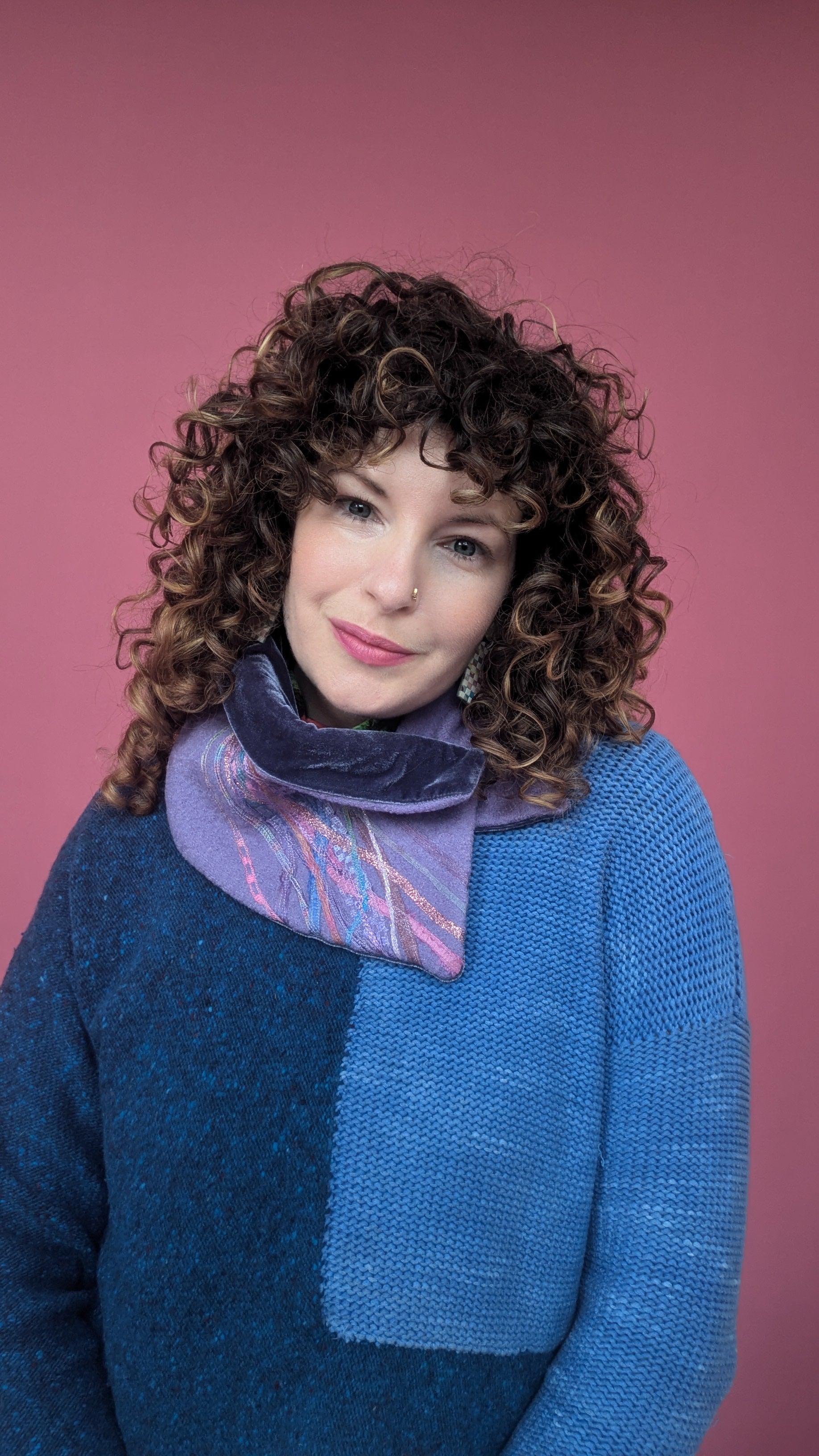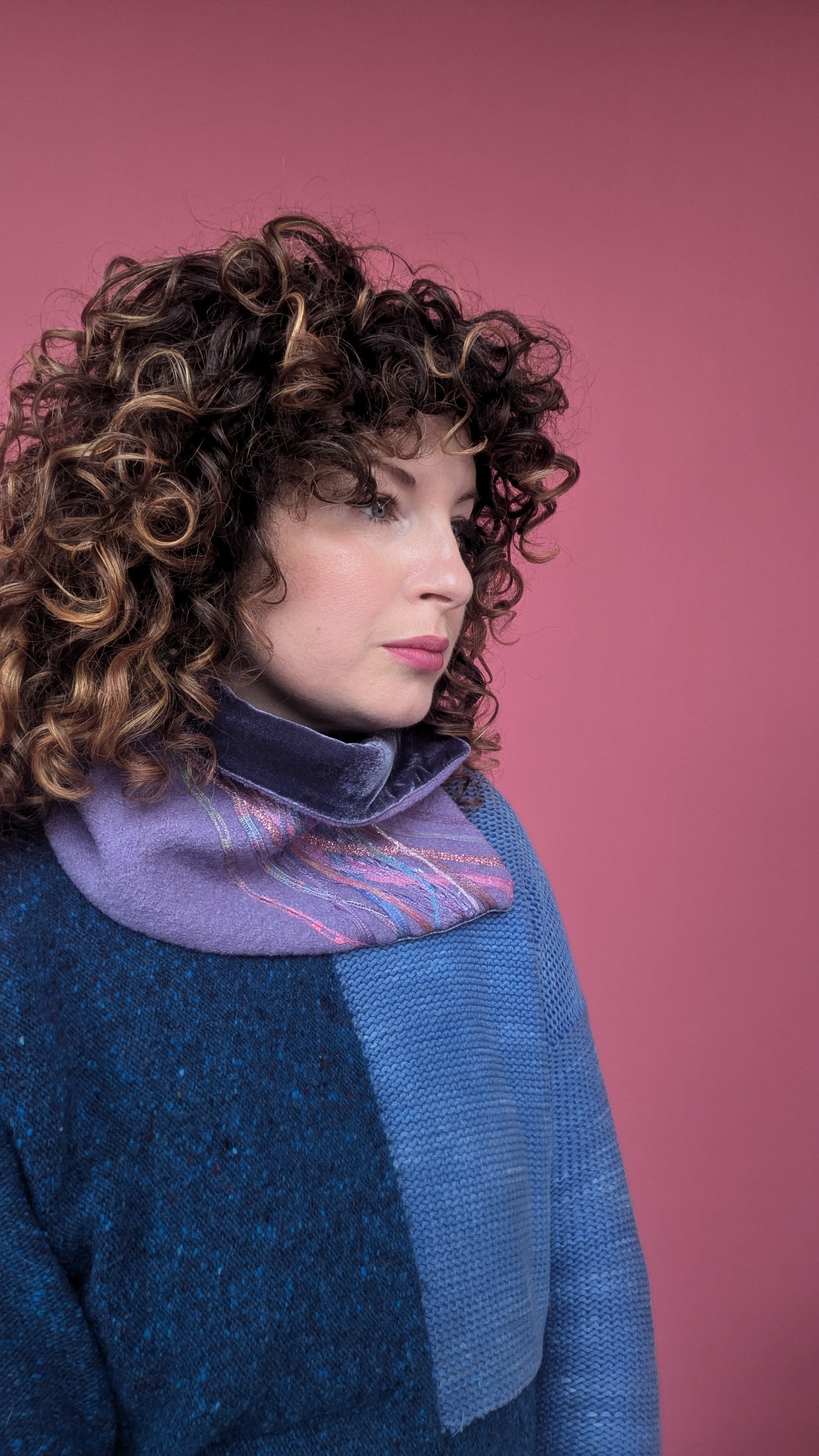 Embellished Wool & Velvet Neck Wrap in Lilac