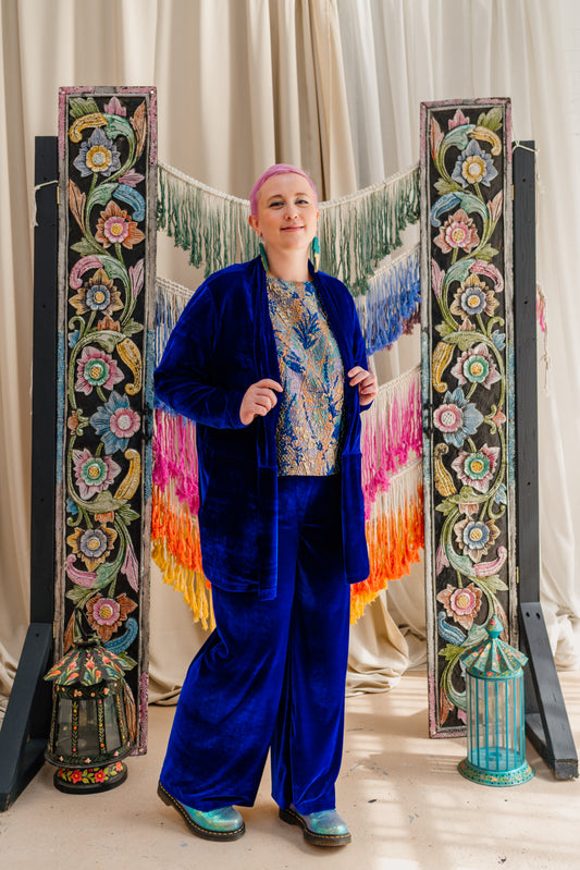 Velvet Straight Leg Trousers in Royal Blue