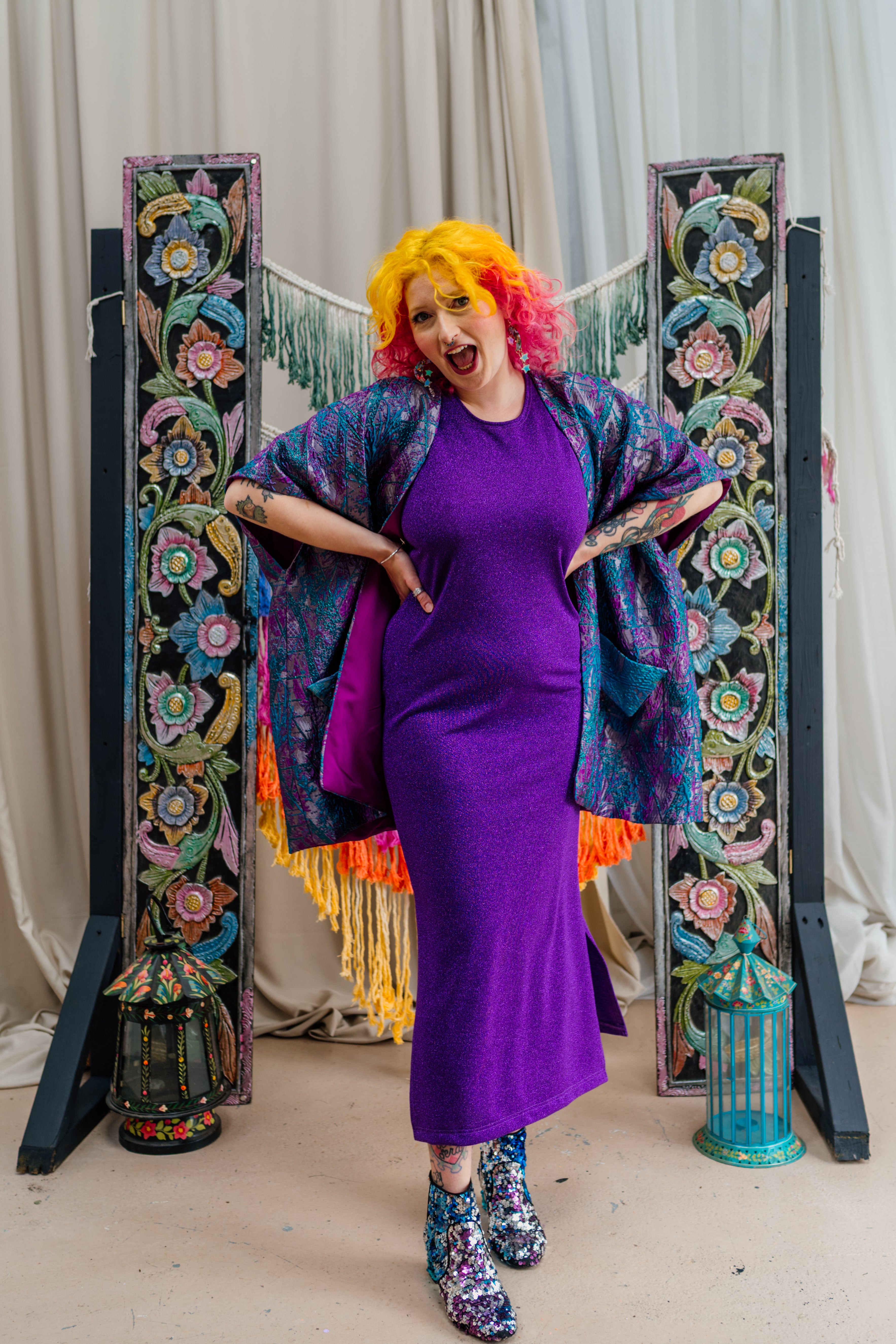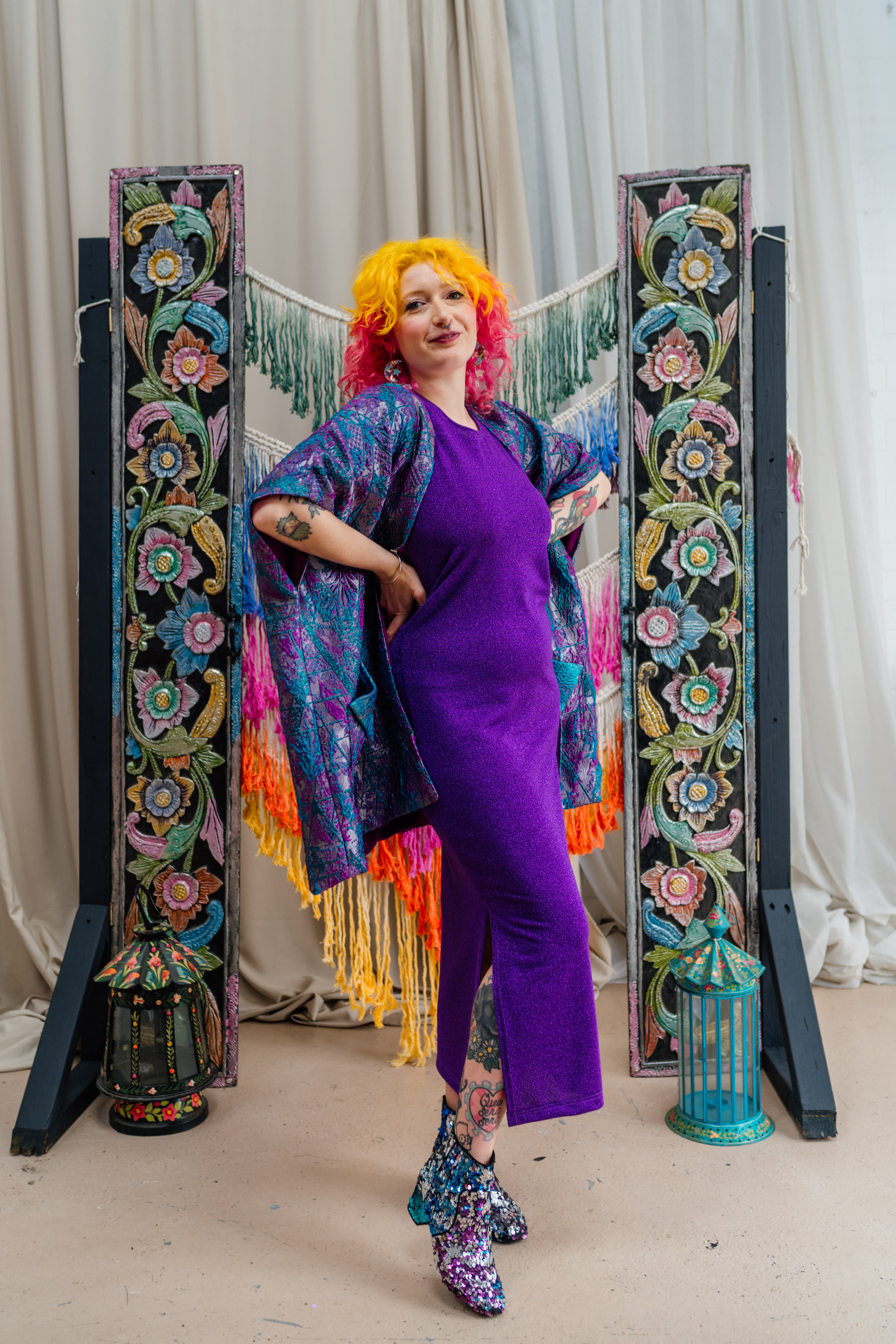SALE - Glitter Lurex Maxi Dress in Purple M