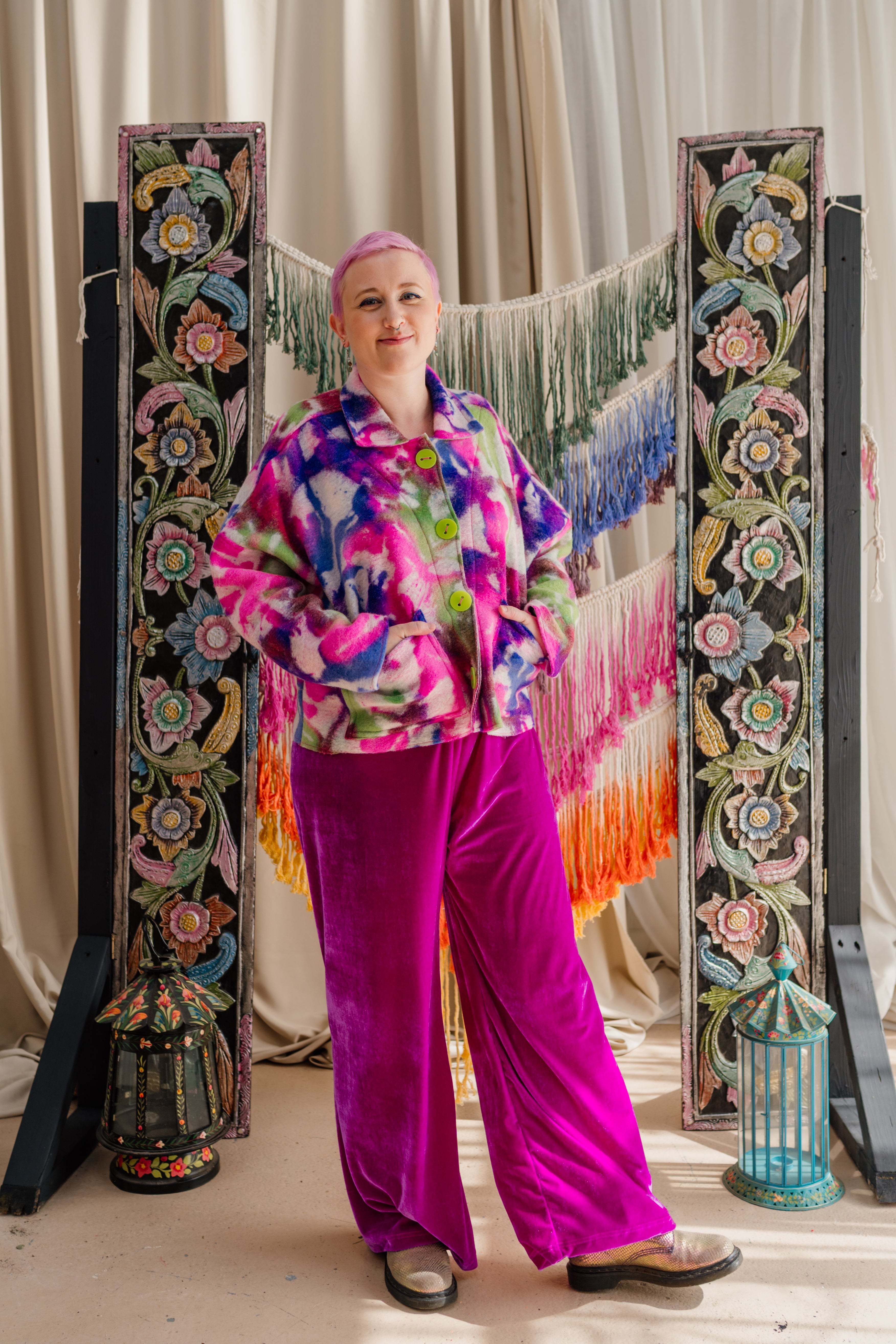 Velvet Straight Leg Trousers in Orchid