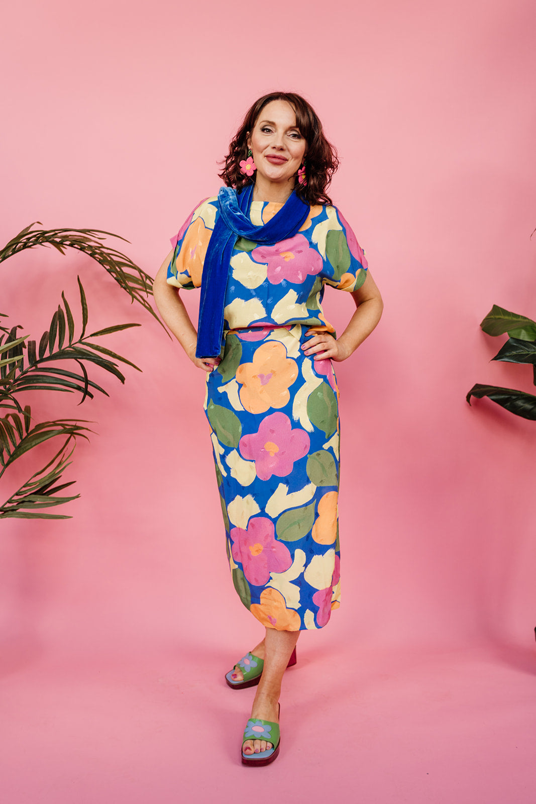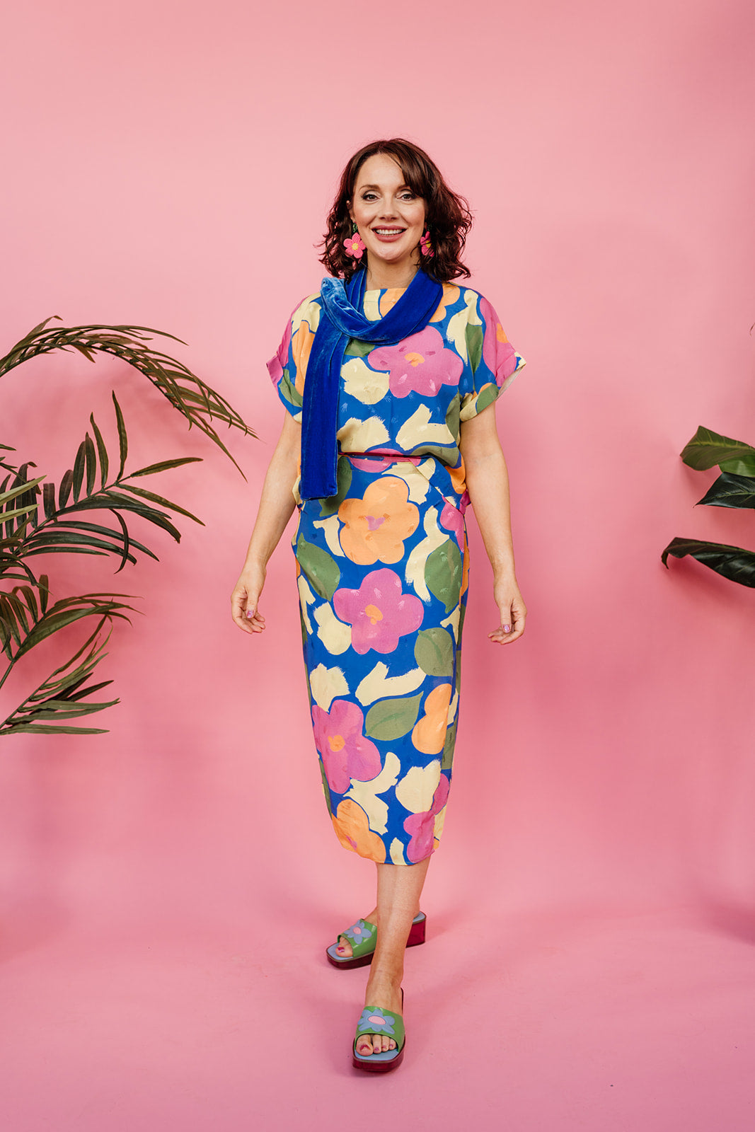 Handmade shift top in stunning bold floral print. This boxy crop top comes to just below the waist for super flattering and timeless style.