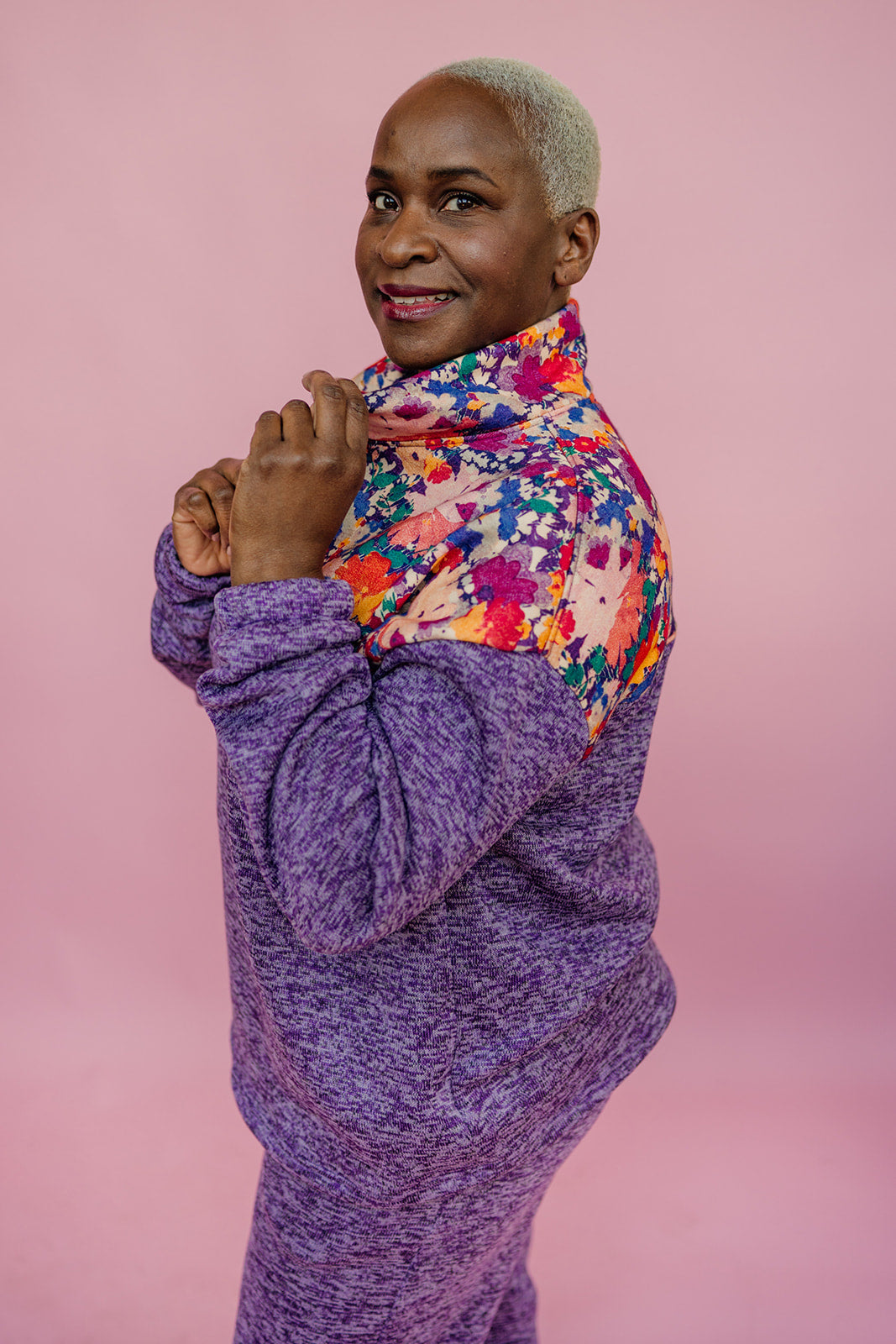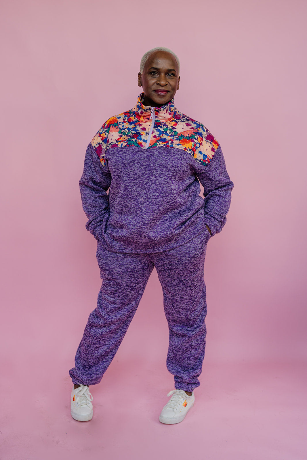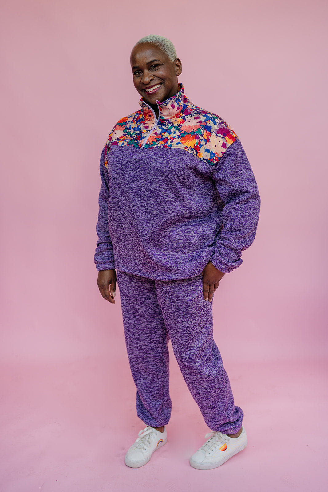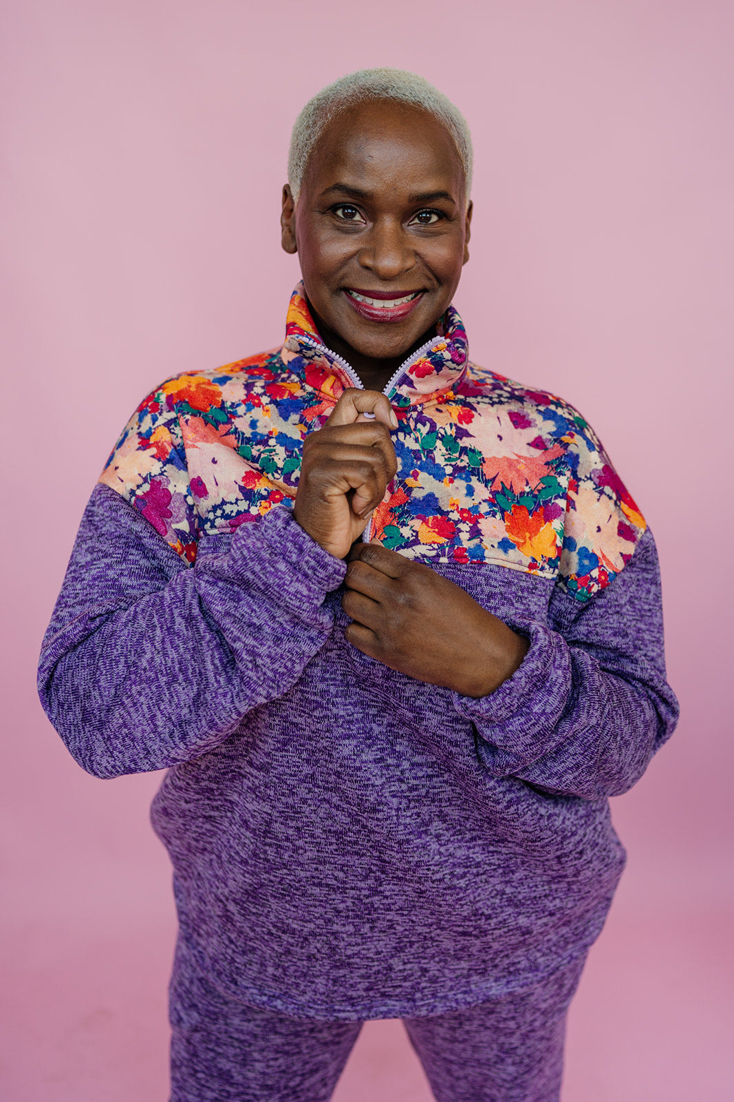 Liberty Print Half Zip Pullover in Purple