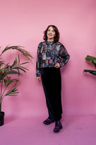 Styled with Batwing Pullover in Steel Abstract