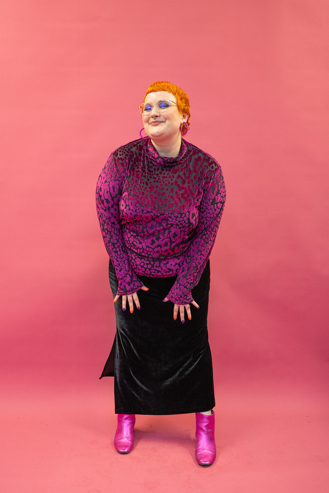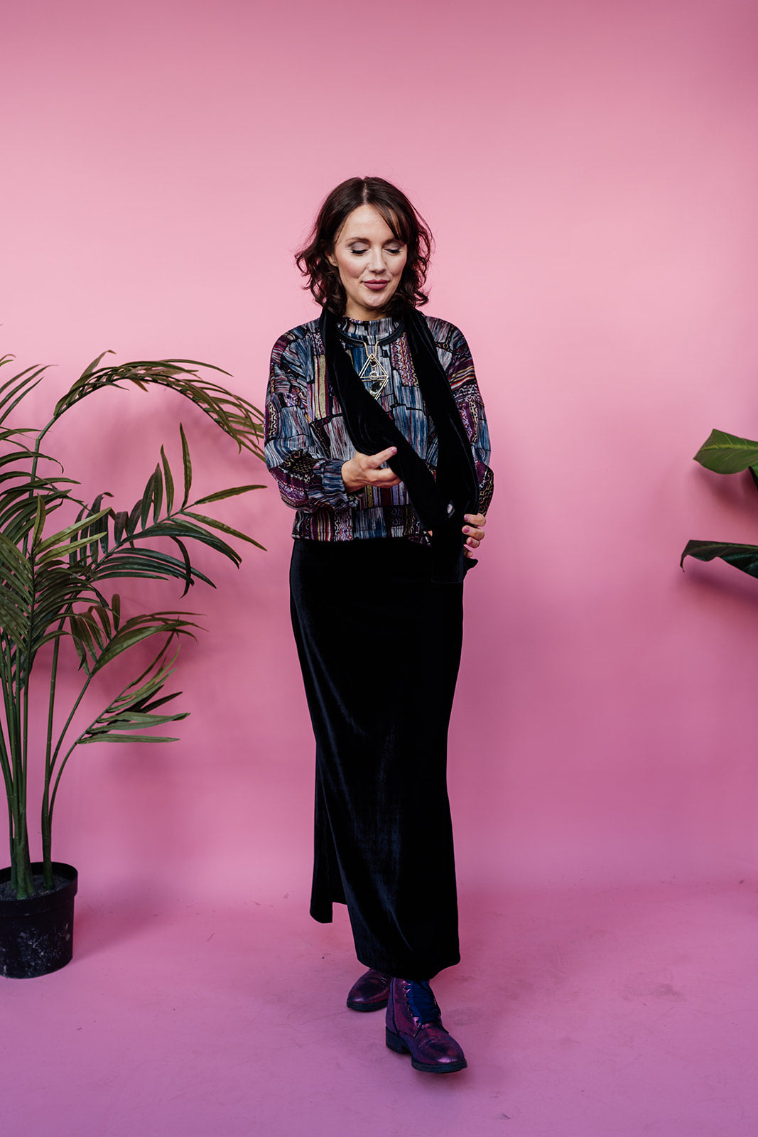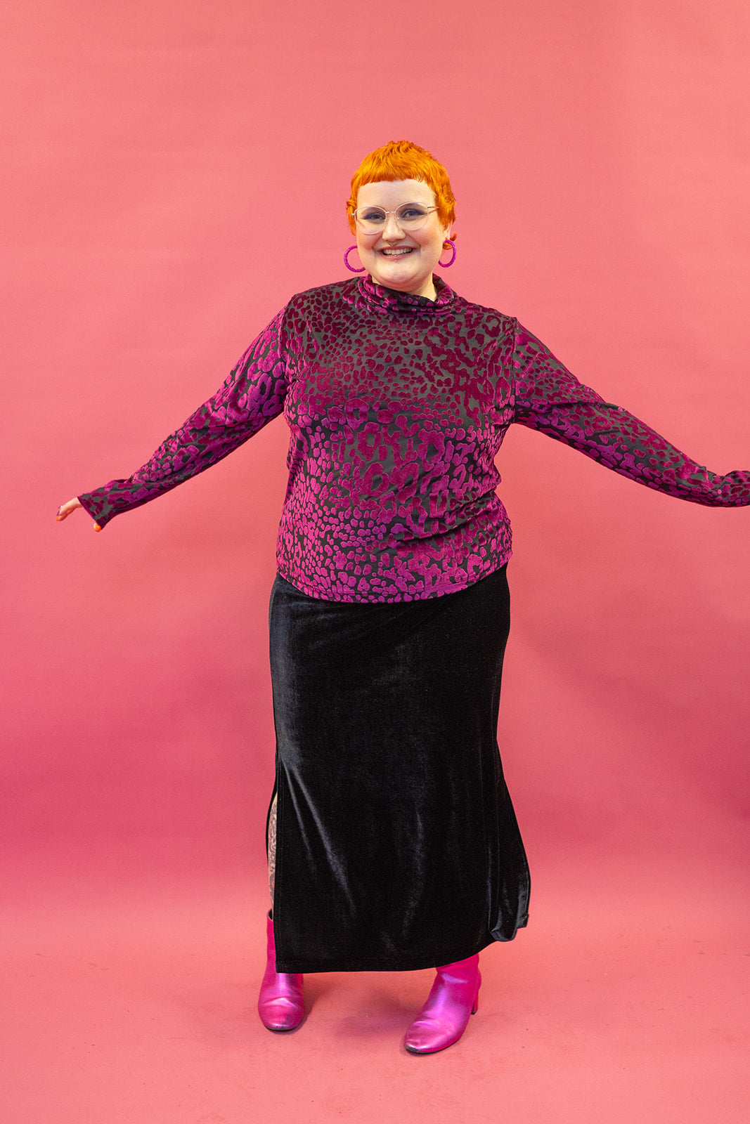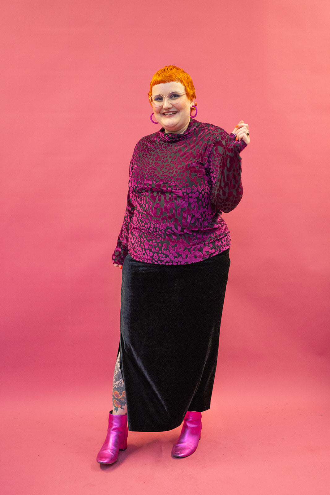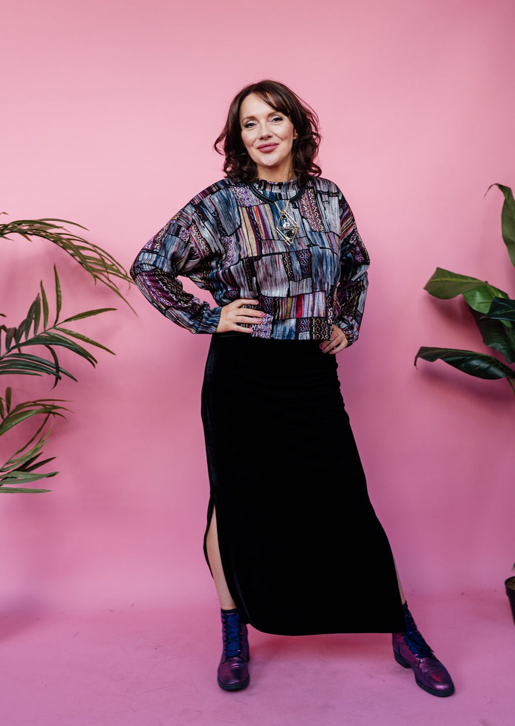 Dress to impress in our Velvet Side Split Skirt as we transition through the seasons in comfort and style. Great for layering, warm and soft for all day comfort into the evening for wintery evenings out.