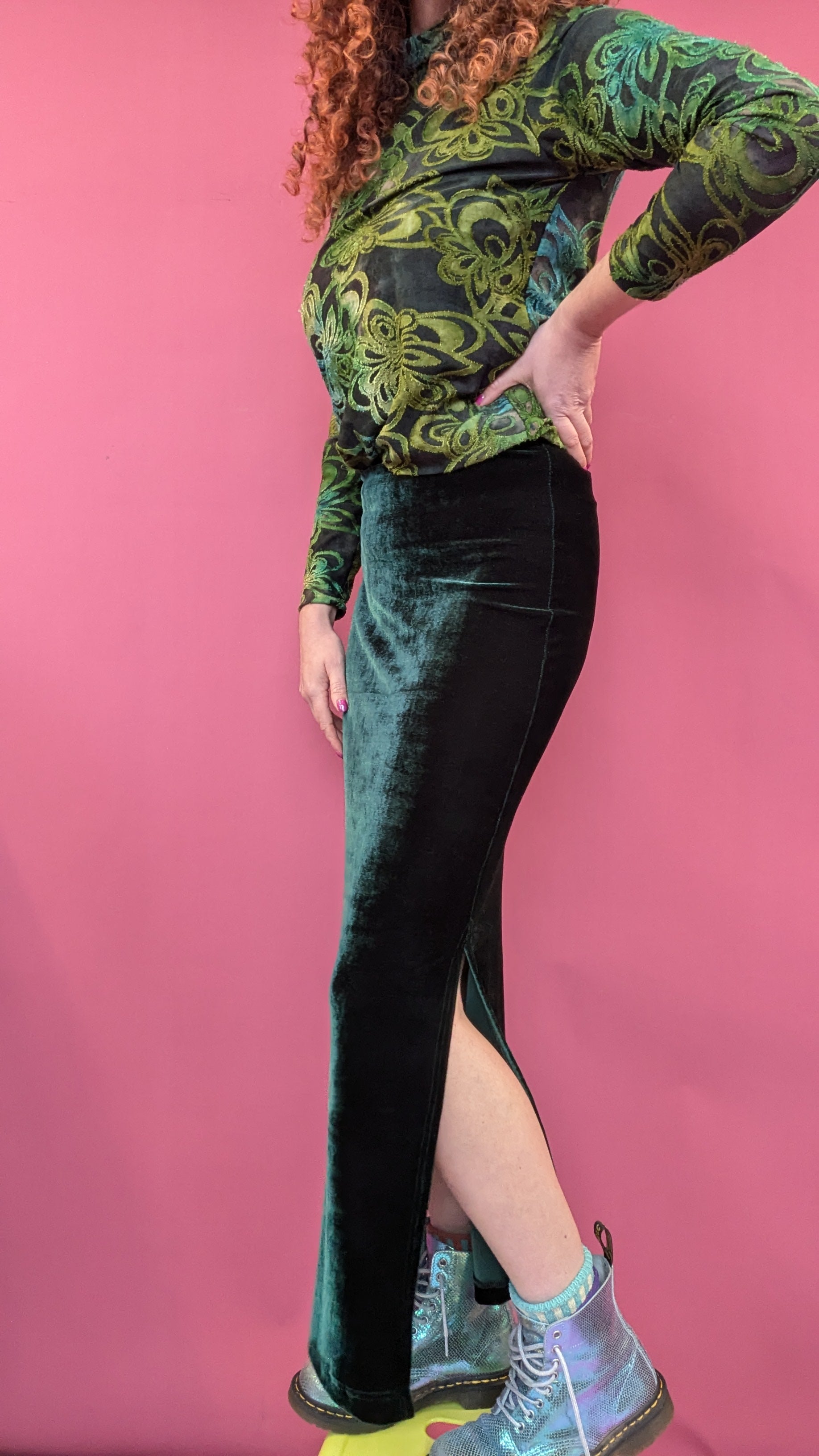 Dress to impress in our Velvet Side Split Skirt as we transition through the seasons in comfort and style. Great for layering, super soft for all day comfort into the evening.