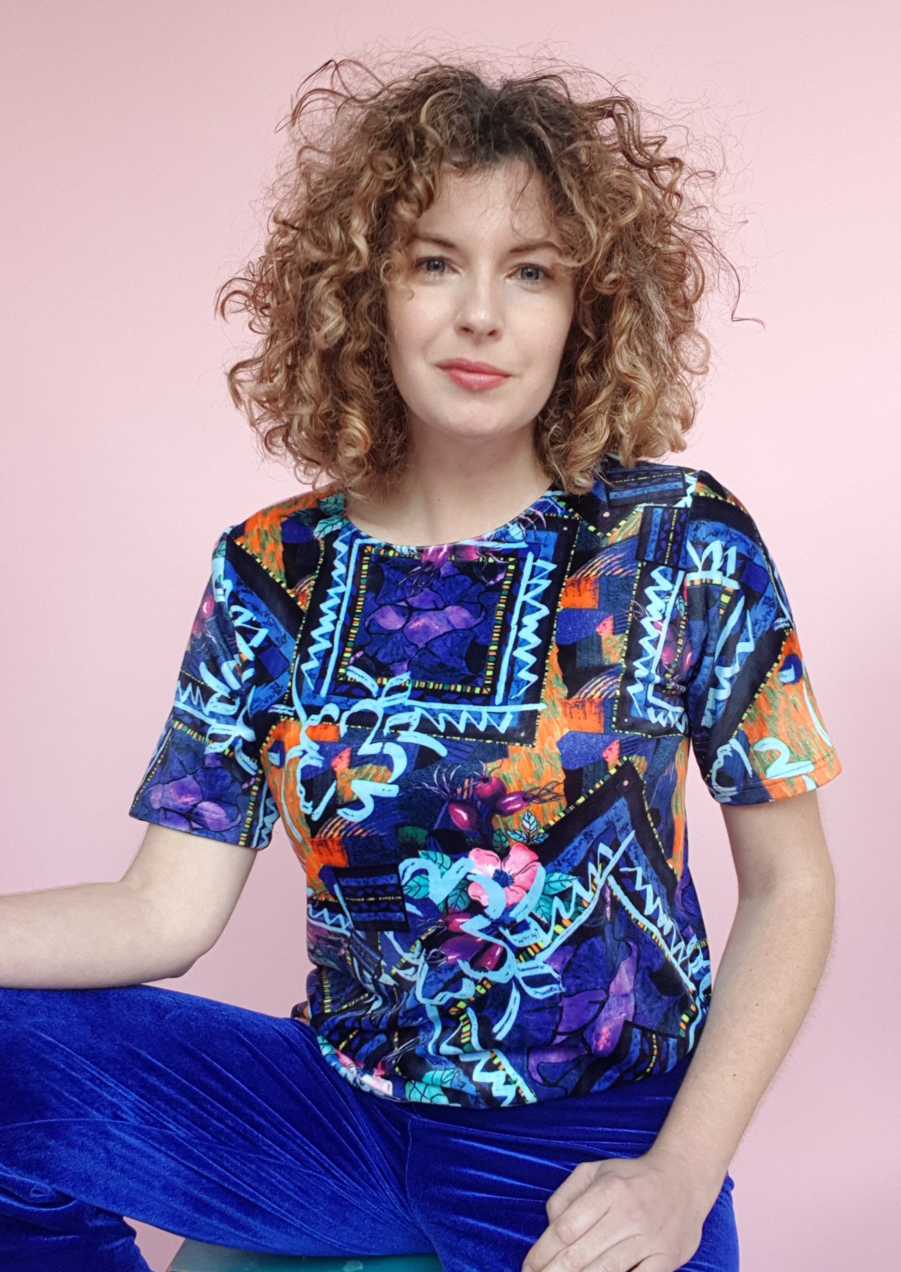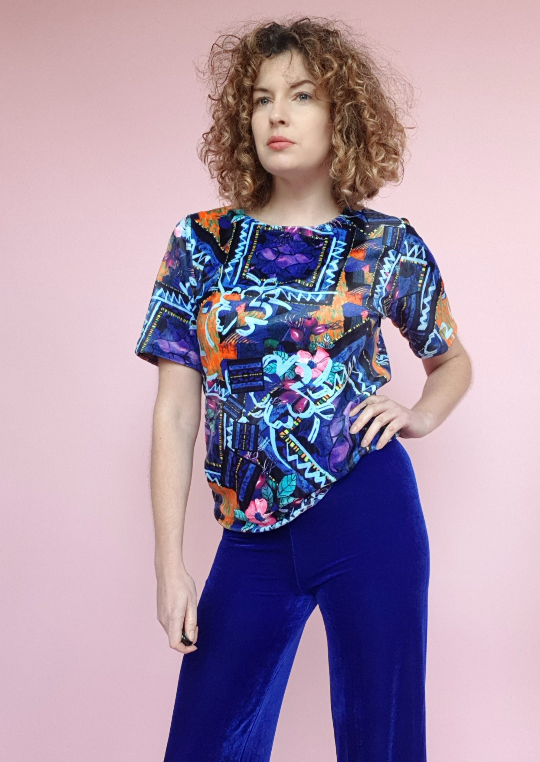Our velvet tees will quickly become an everyday essential. It can be worn tucked with high waisted bottoms or left loose over jeans, you can flaunt it at the office, down the pub or on a hot date. The top is easy fitting and features a crew neckline and short sleeves.