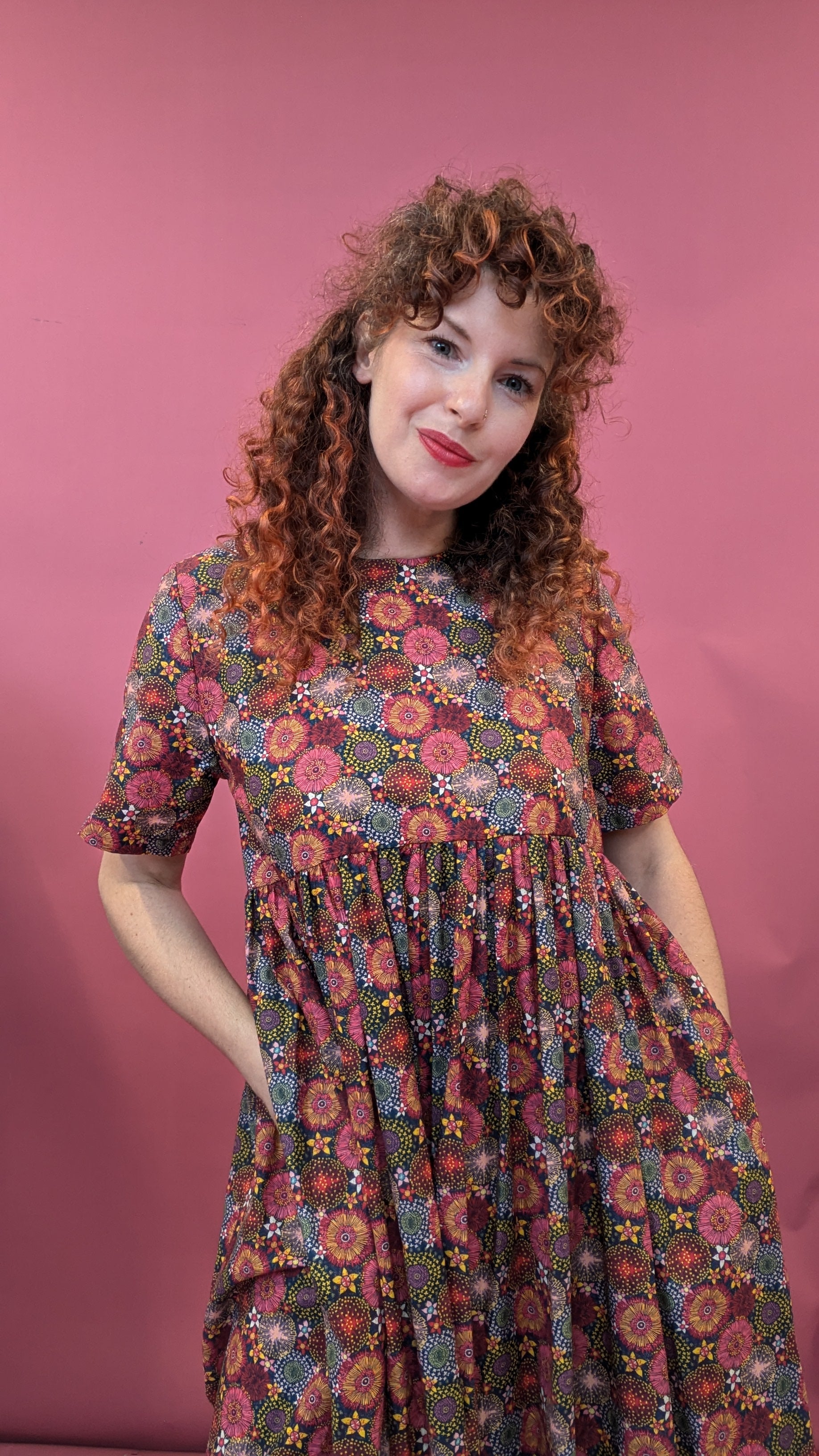 Swish and swirl your worries away in this glorious frock. This gorgeous fabric will make you (and everyone else) smile with every wear. And yes, it has pockets!