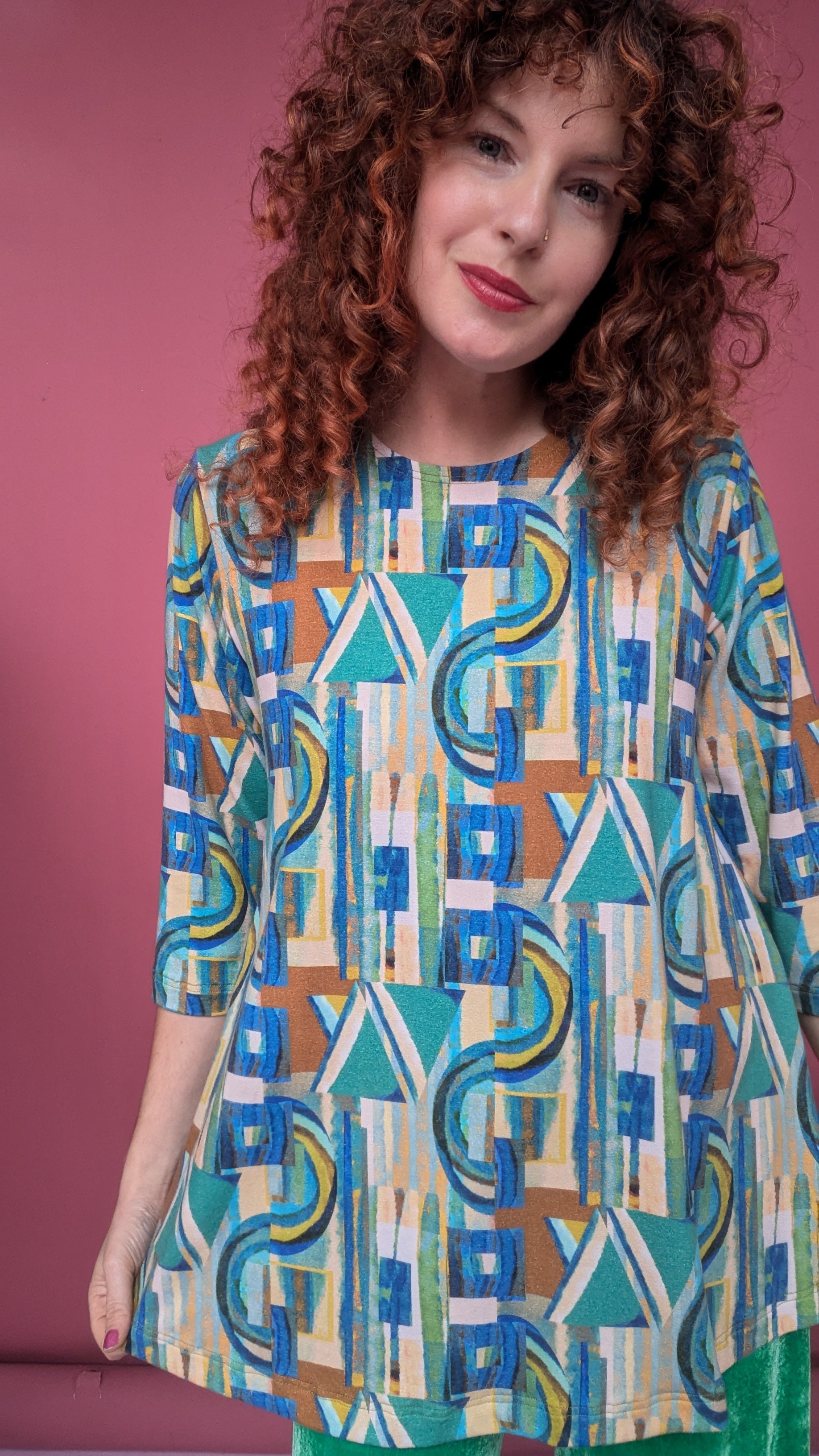 Swing Tunic in Green Retro Block