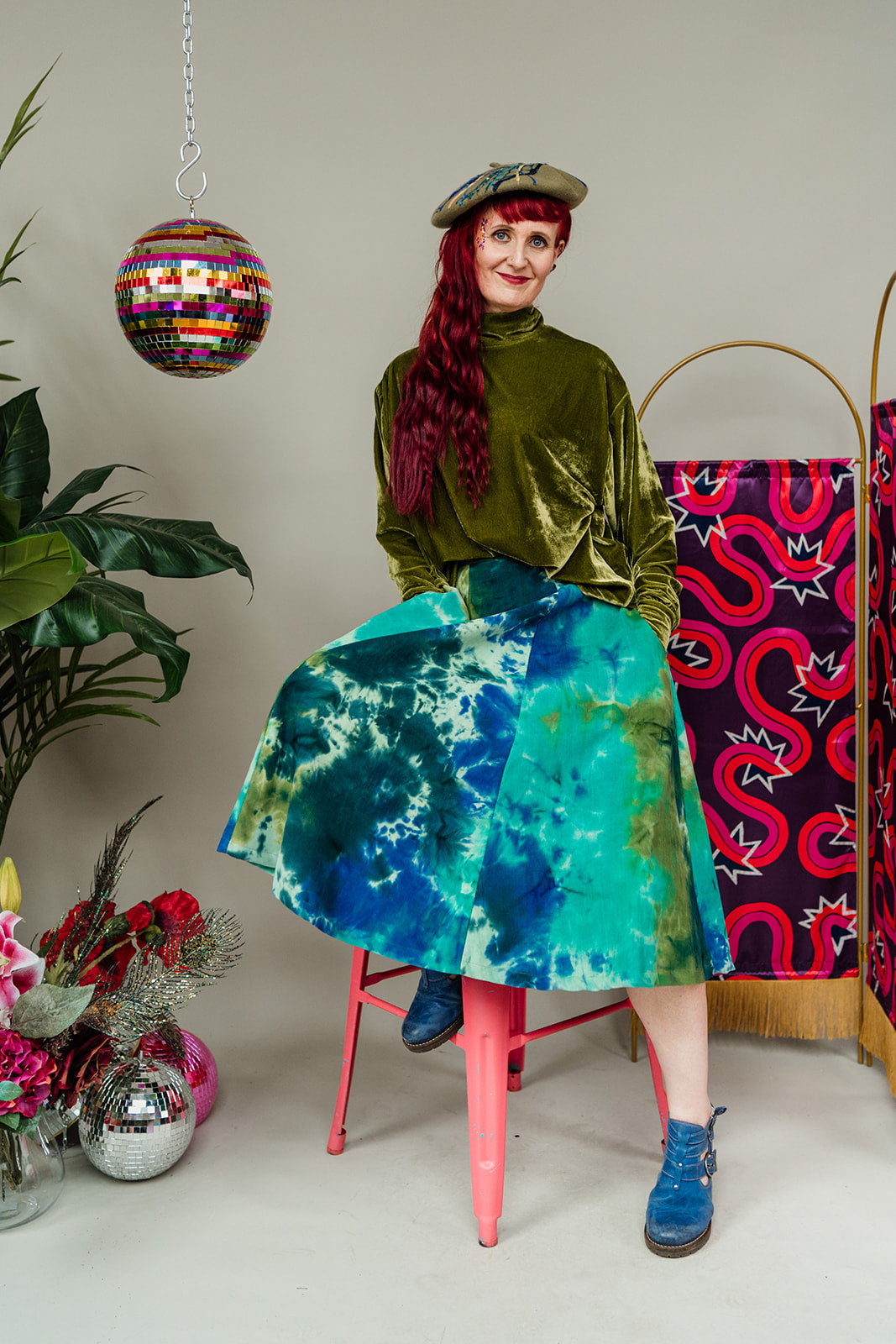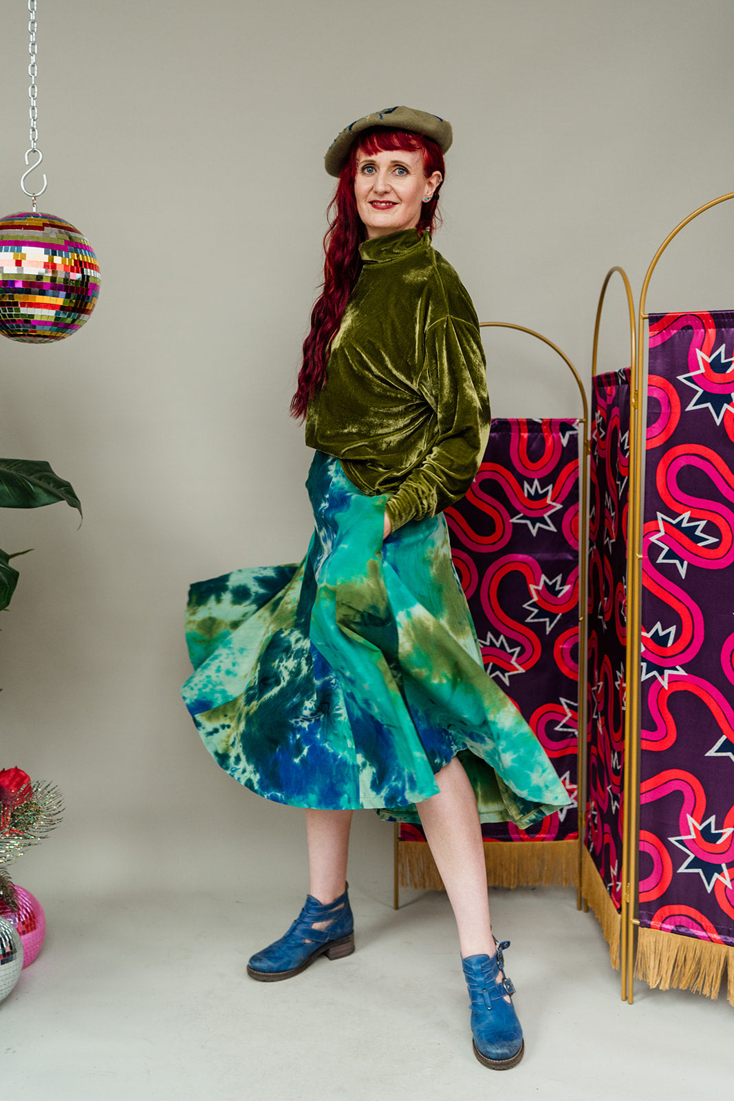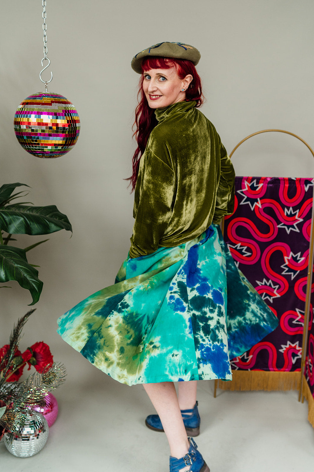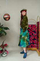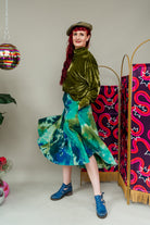 Dance through every day in this flowing full skirt in unique green and aqua needle cord. Each panel has been carefully hand-dyed using a gorgeous ice dying process so the colour and pattern will vary on each garment - making them unique!