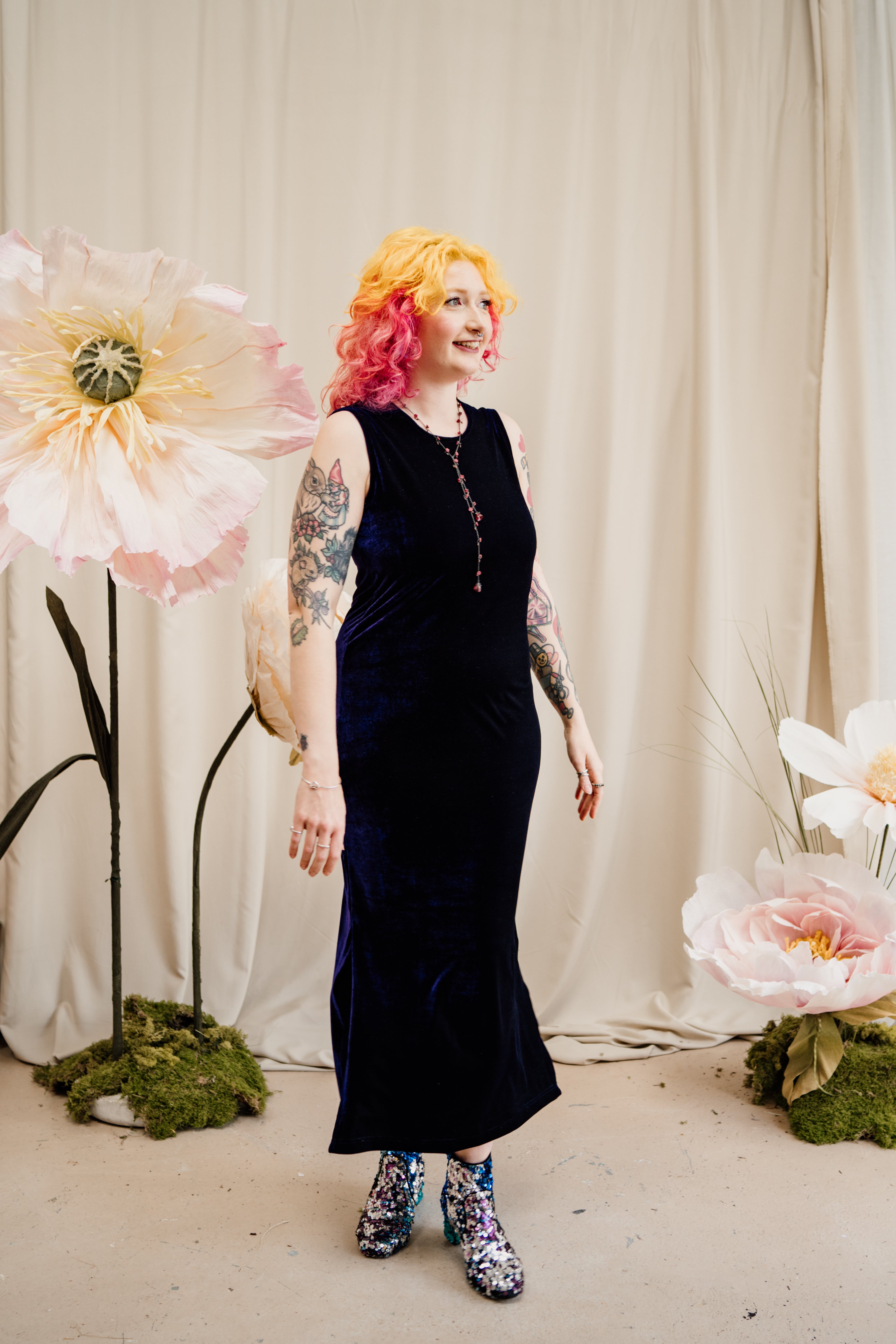 Stunning velvet maxi dress! These dresses are so luxuriously soft, perfect for dressing up for a special event or layering up with a cardi for a more casual look.