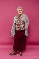 Dress to impress in our Velvet Side Split Skirt as we transition through the seasons in comfort and style. Great for layering, warm and soft for all day comfort into the evening for wintery evenings out.