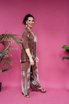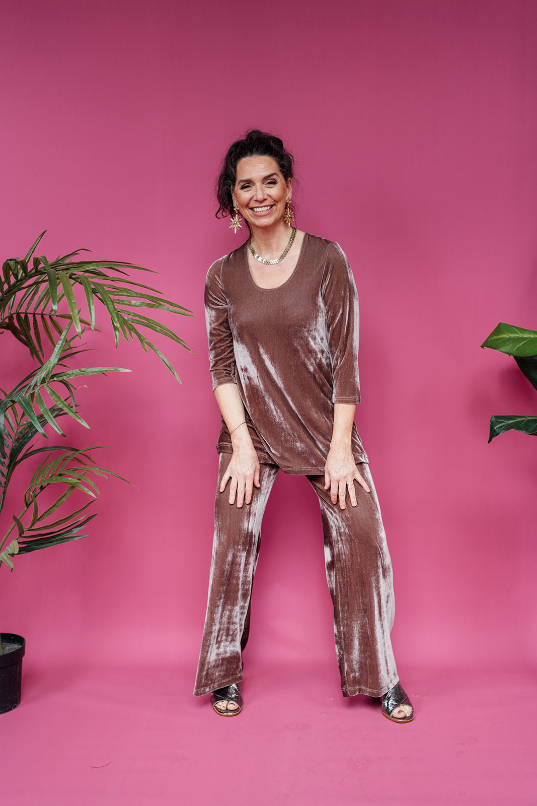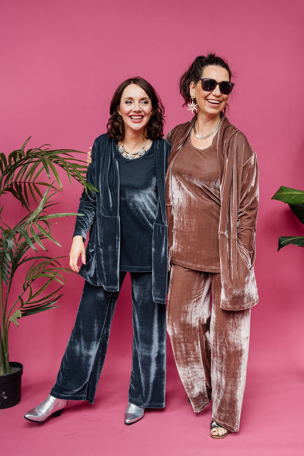 Styled here with Velvet Tunic in Mushroom and Velvet Jacket in Mushroom