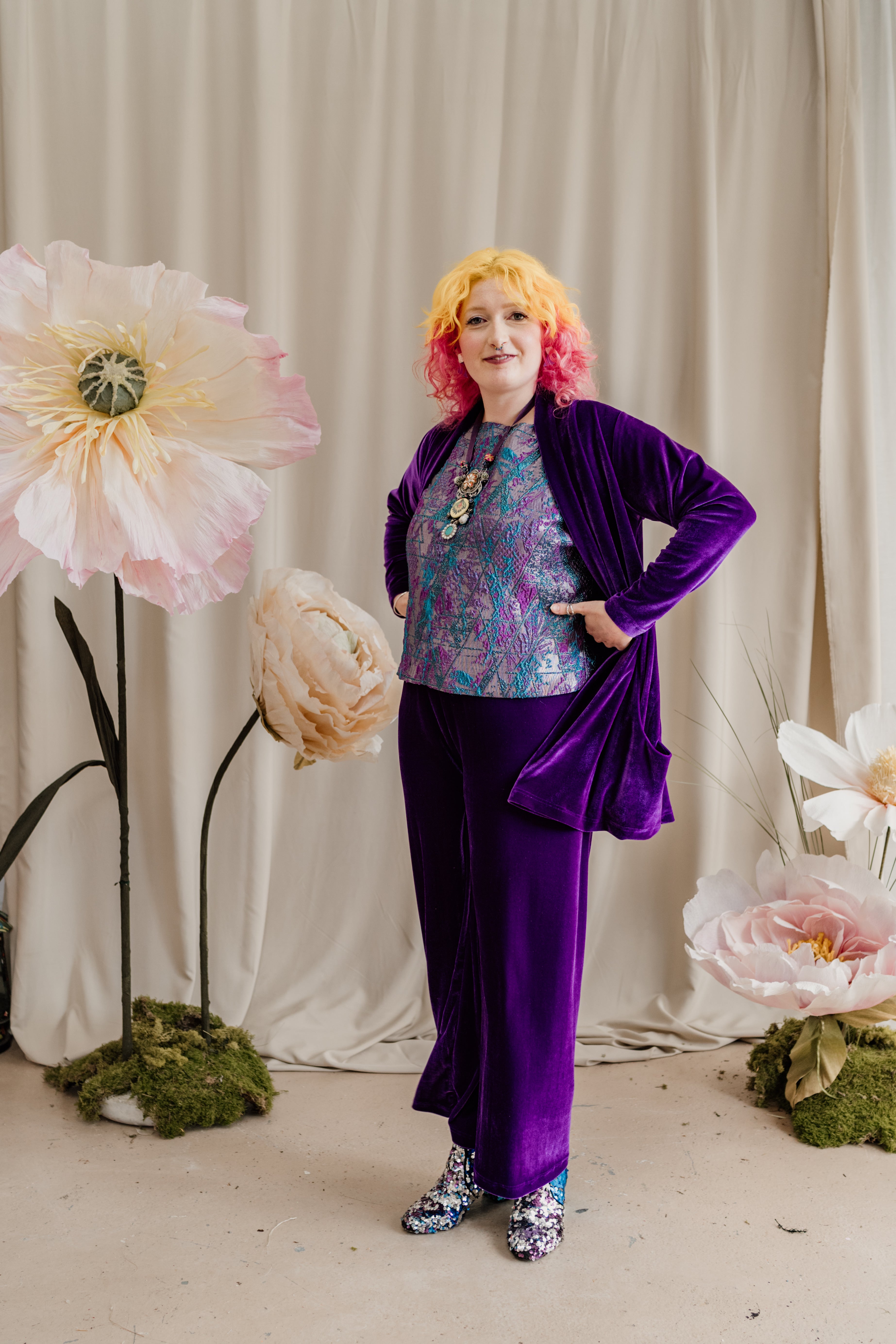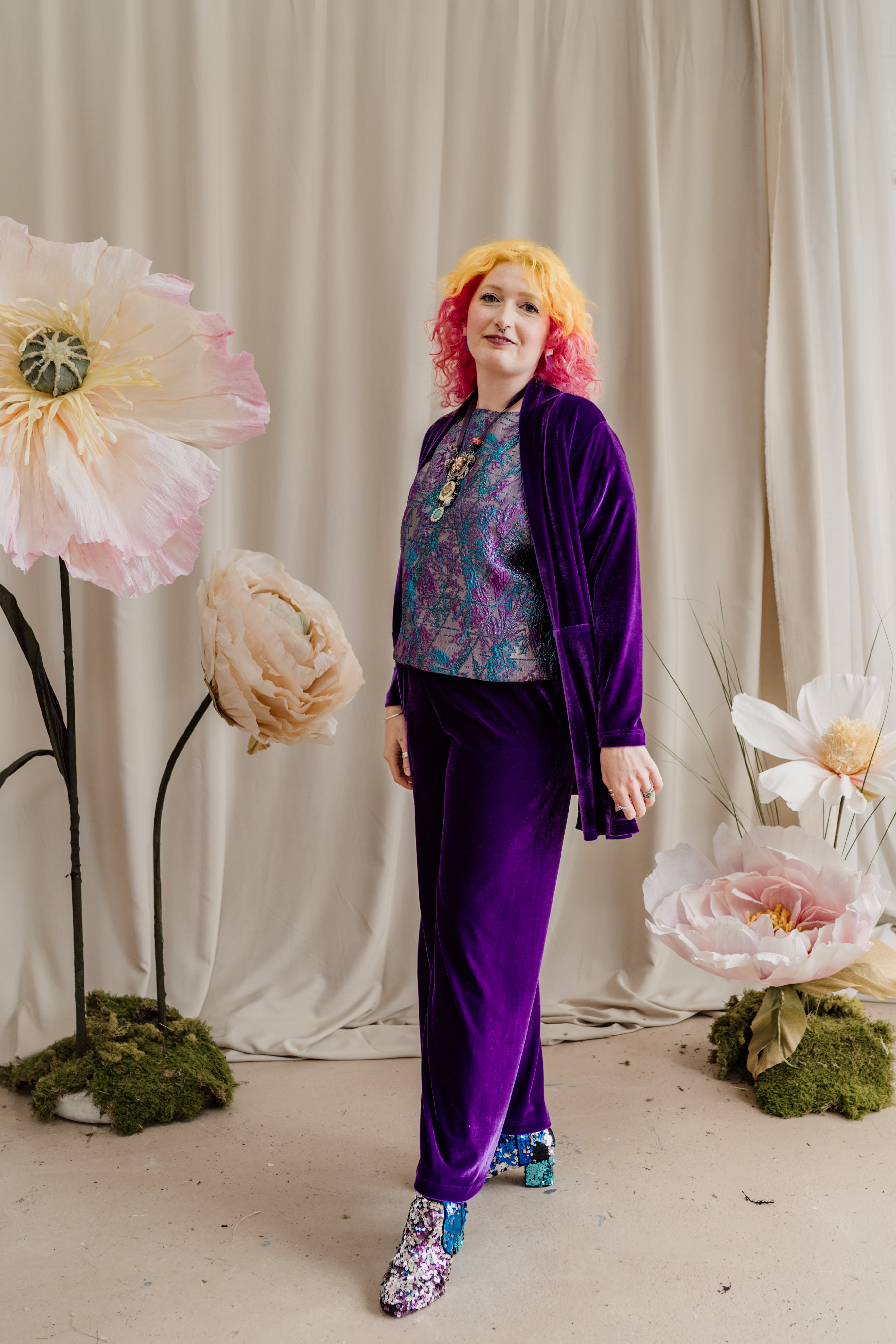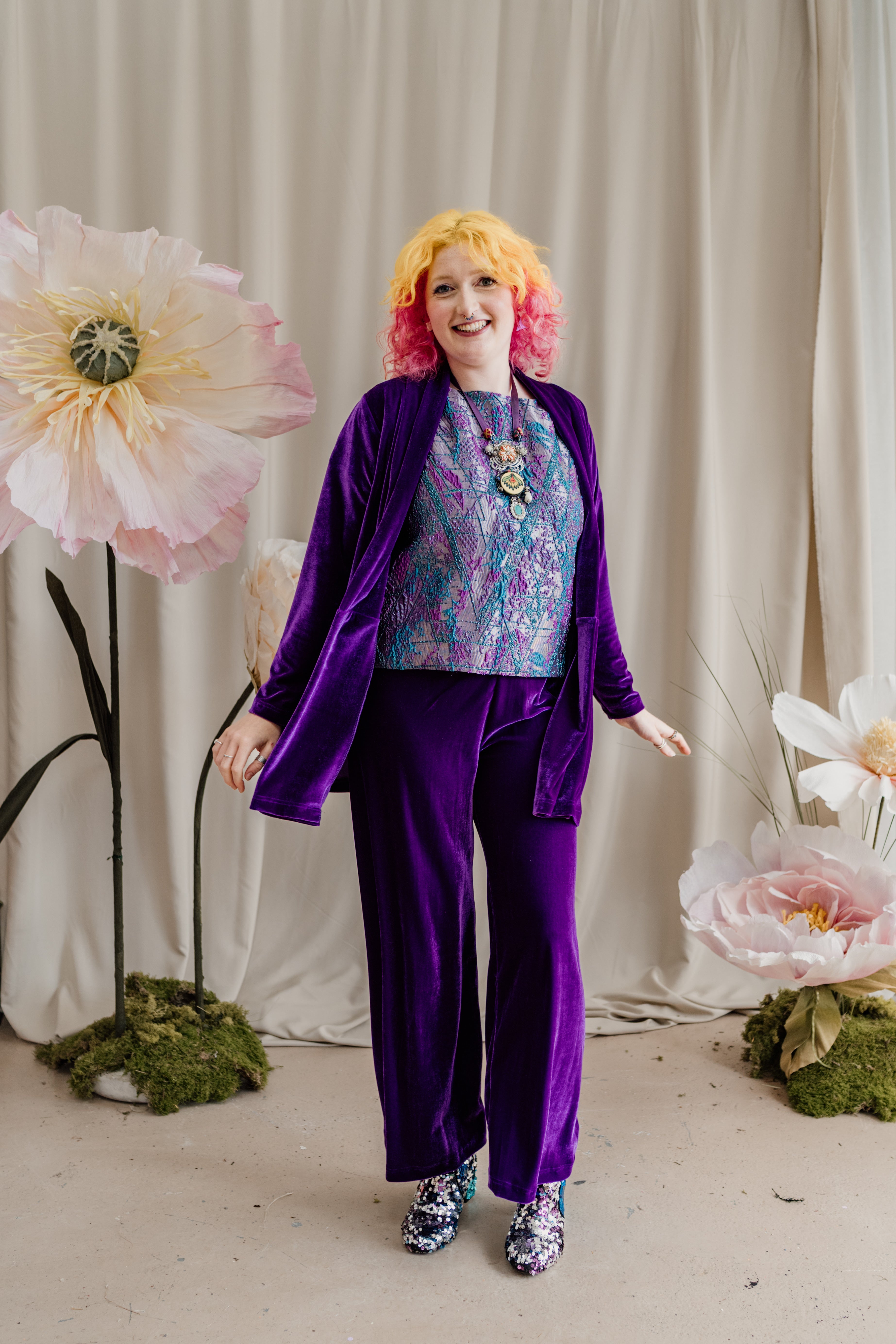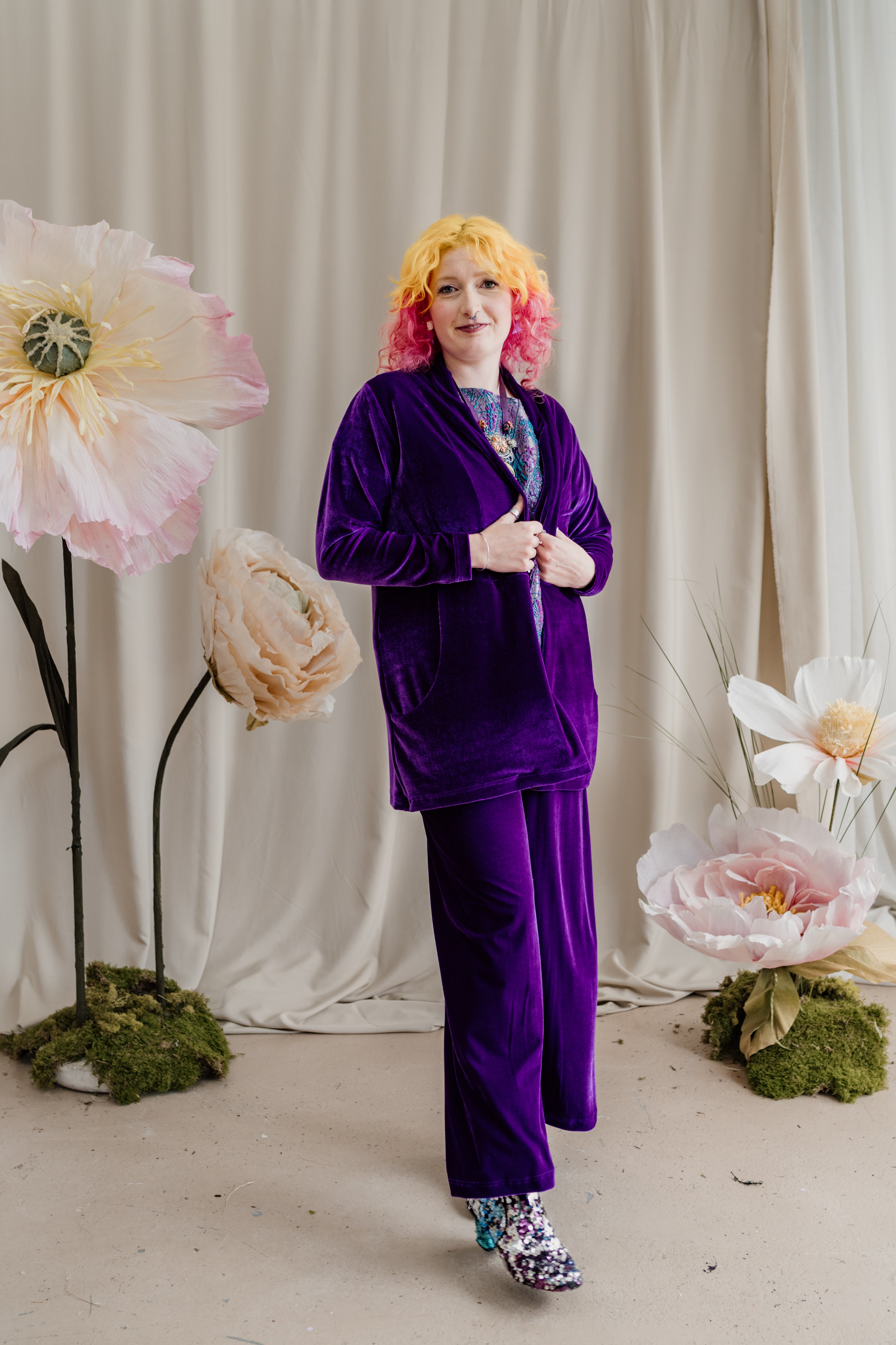Velvet Straight Leg Trousers in Purple + 1 Colour