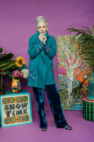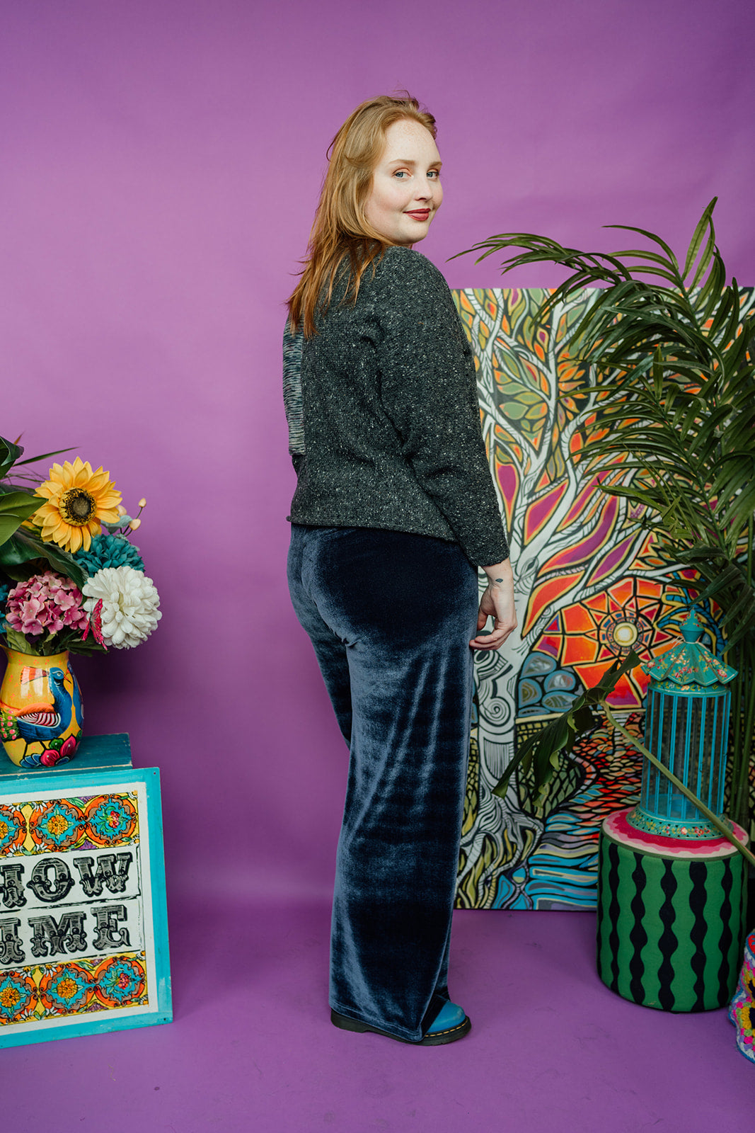 High waisted, straight leg trousers in super soft velvet. These trousers are the perfect smart casual combination