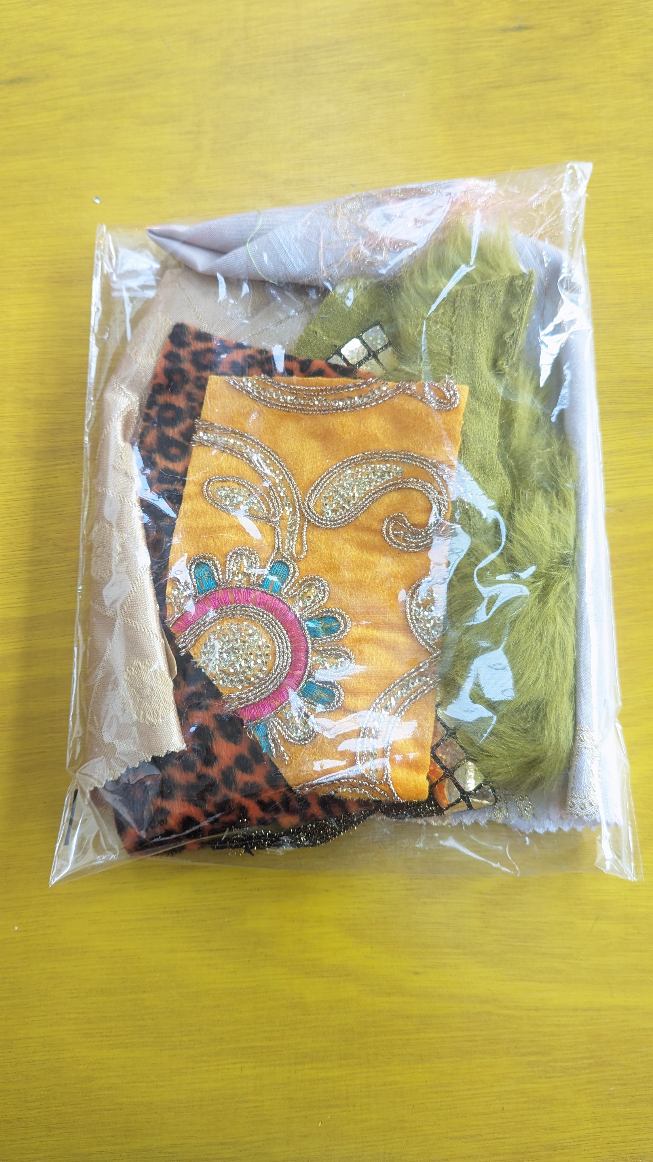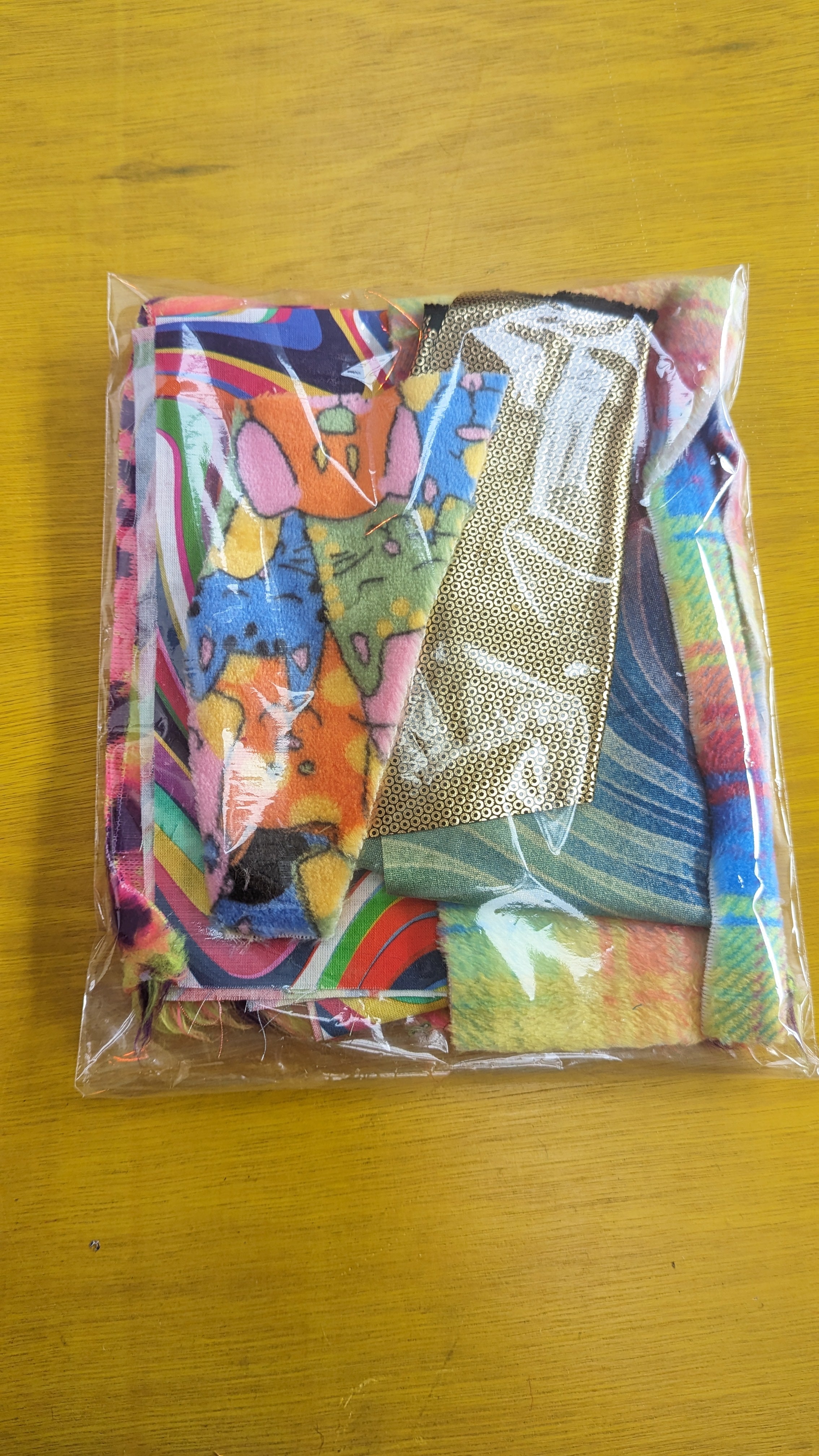 Most fabric pieces range in size from 5-30cm and are varied in shape.