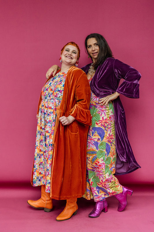 Velvet Ruffle Maxi Cardigan in Burnt Orange