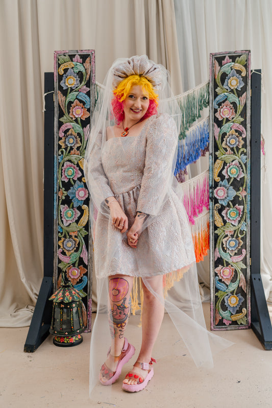 Sequin Bell Sleeve Twiggy Dress in Opal