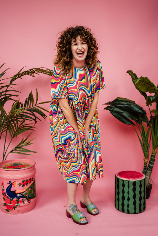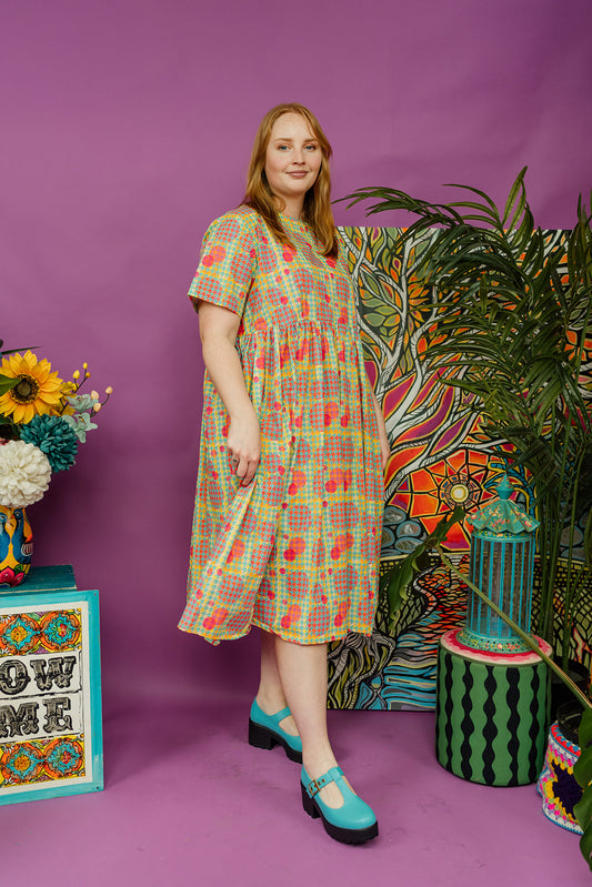Liberty Retro Twiggy Dress in Turquoise Floral