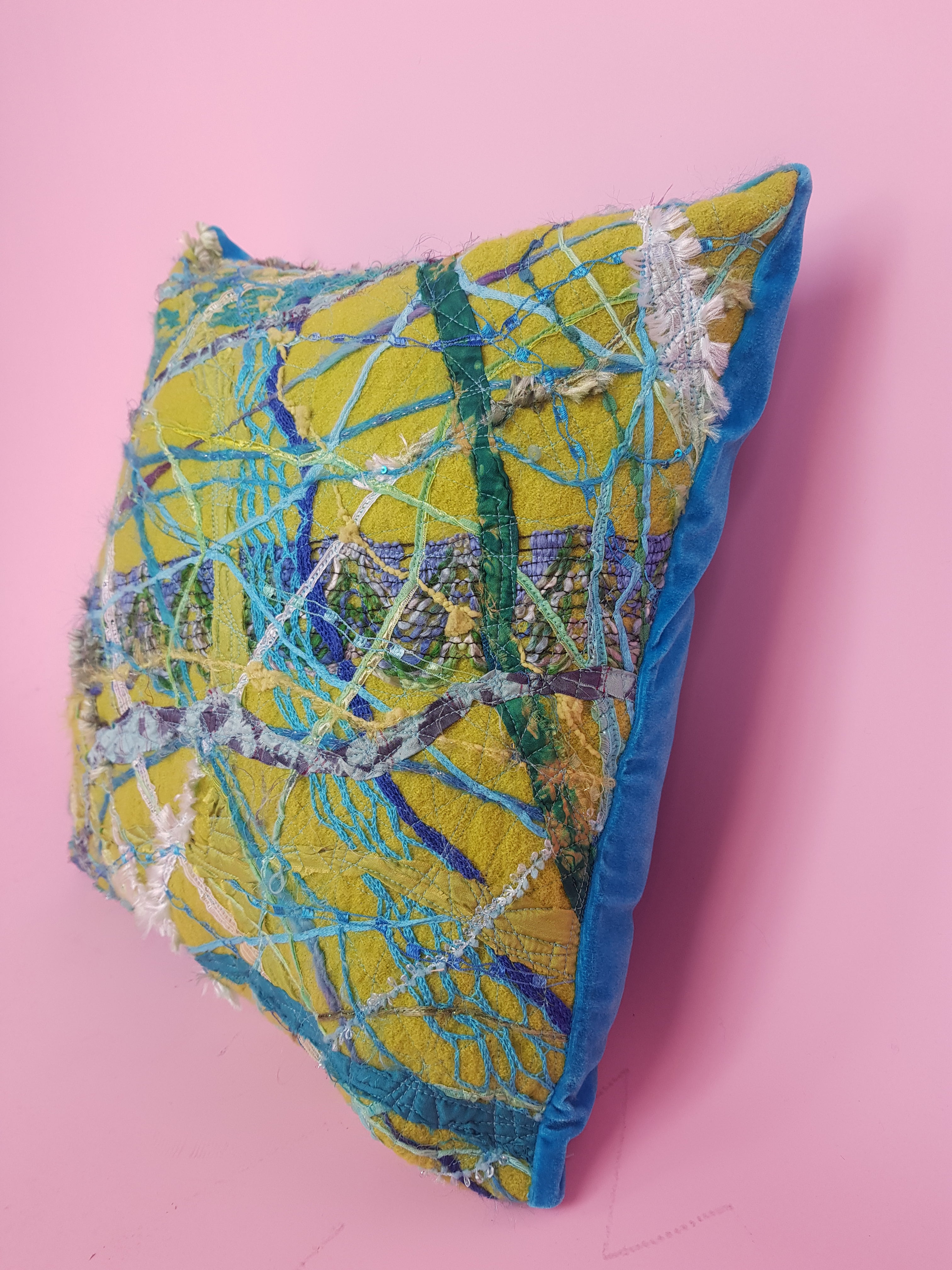 Velvet, Embellished Boiled Wool, Fibre Pillow Insert.
