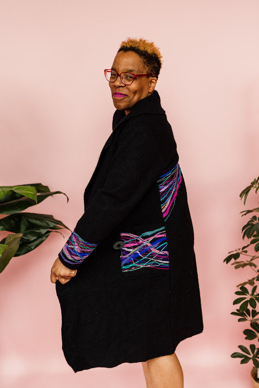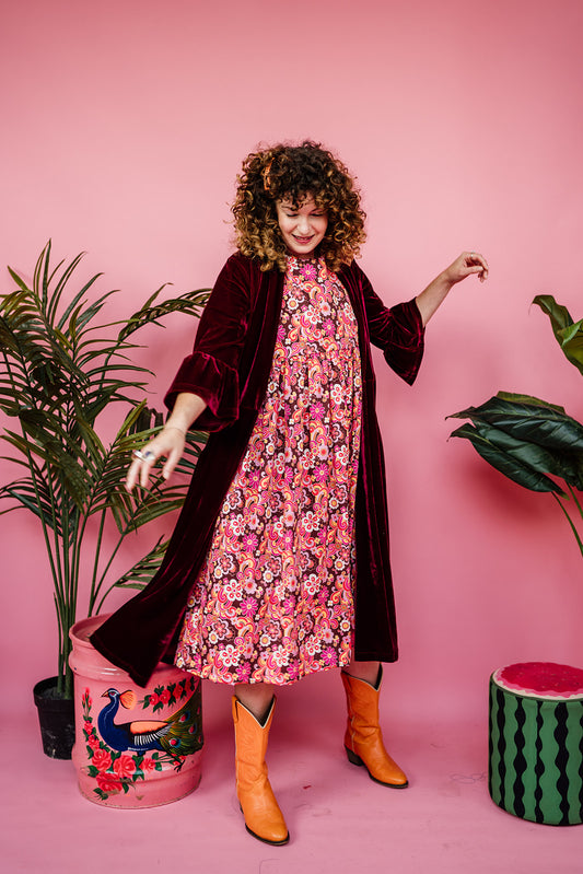 Velvet Ruffle Maxi Cardigan in Burgundy