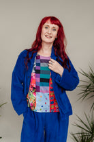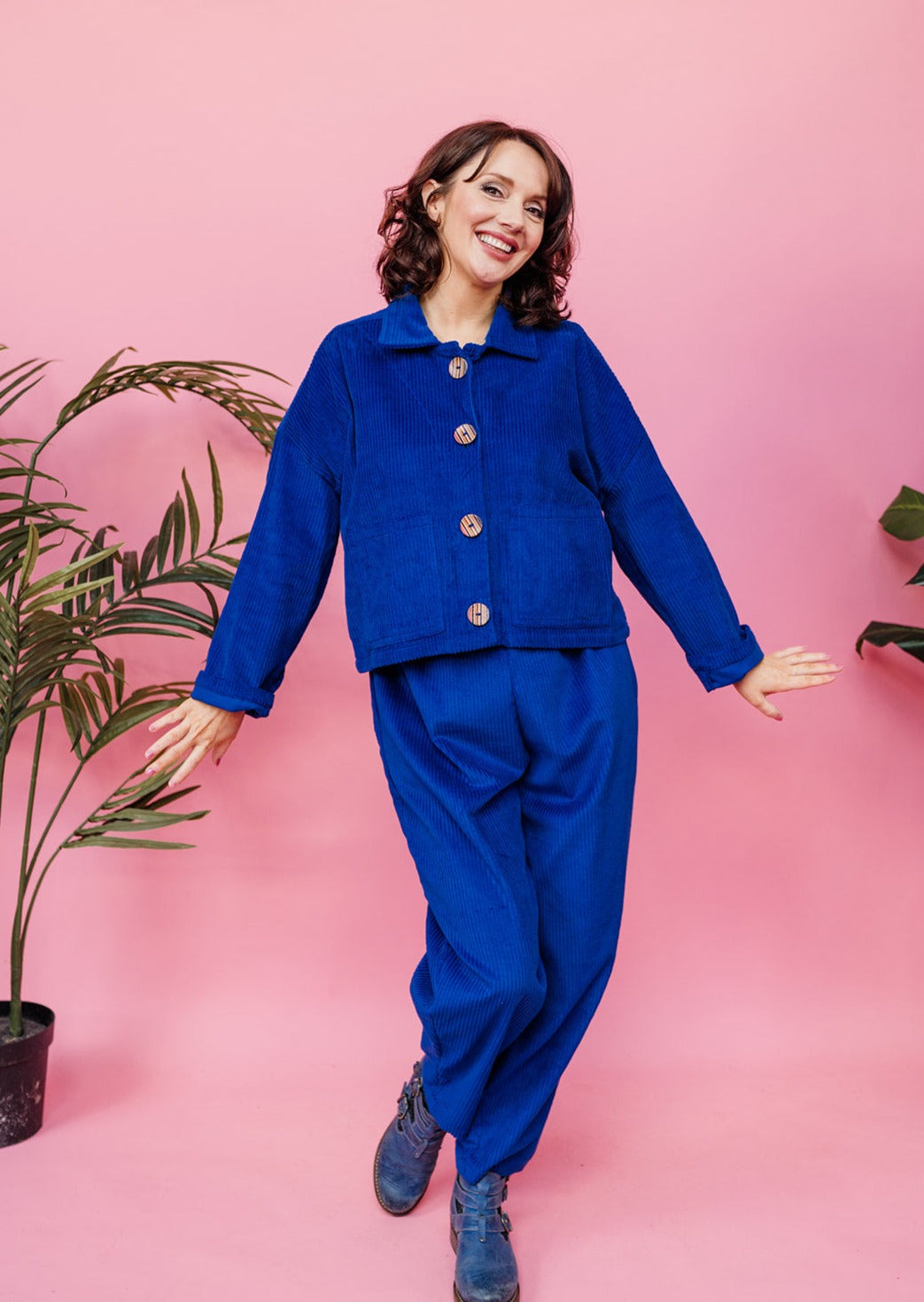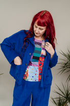 Handmade cropped chore jacket in super soft chunky royal blue corduroy. This casual jacket is an everyday essential!