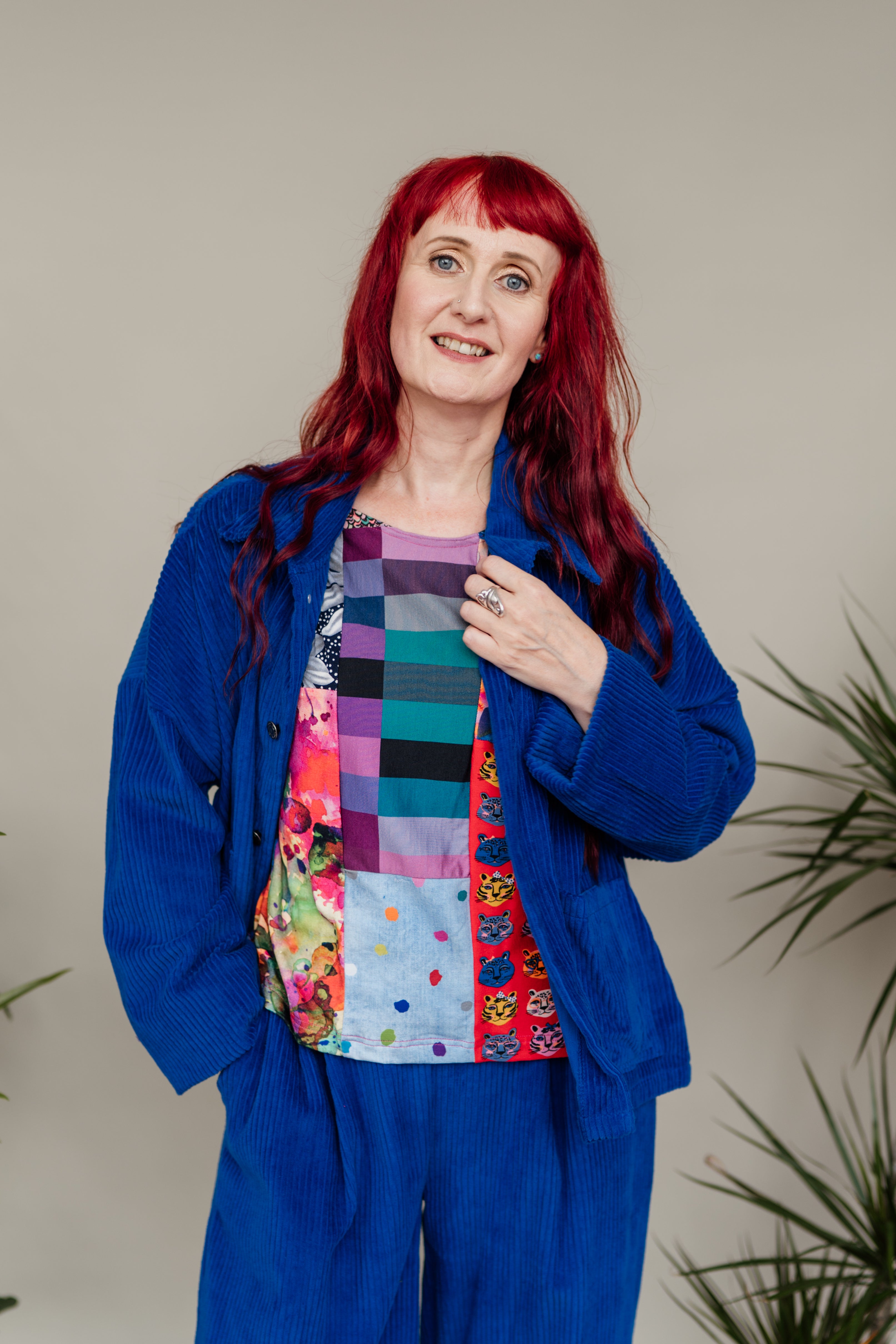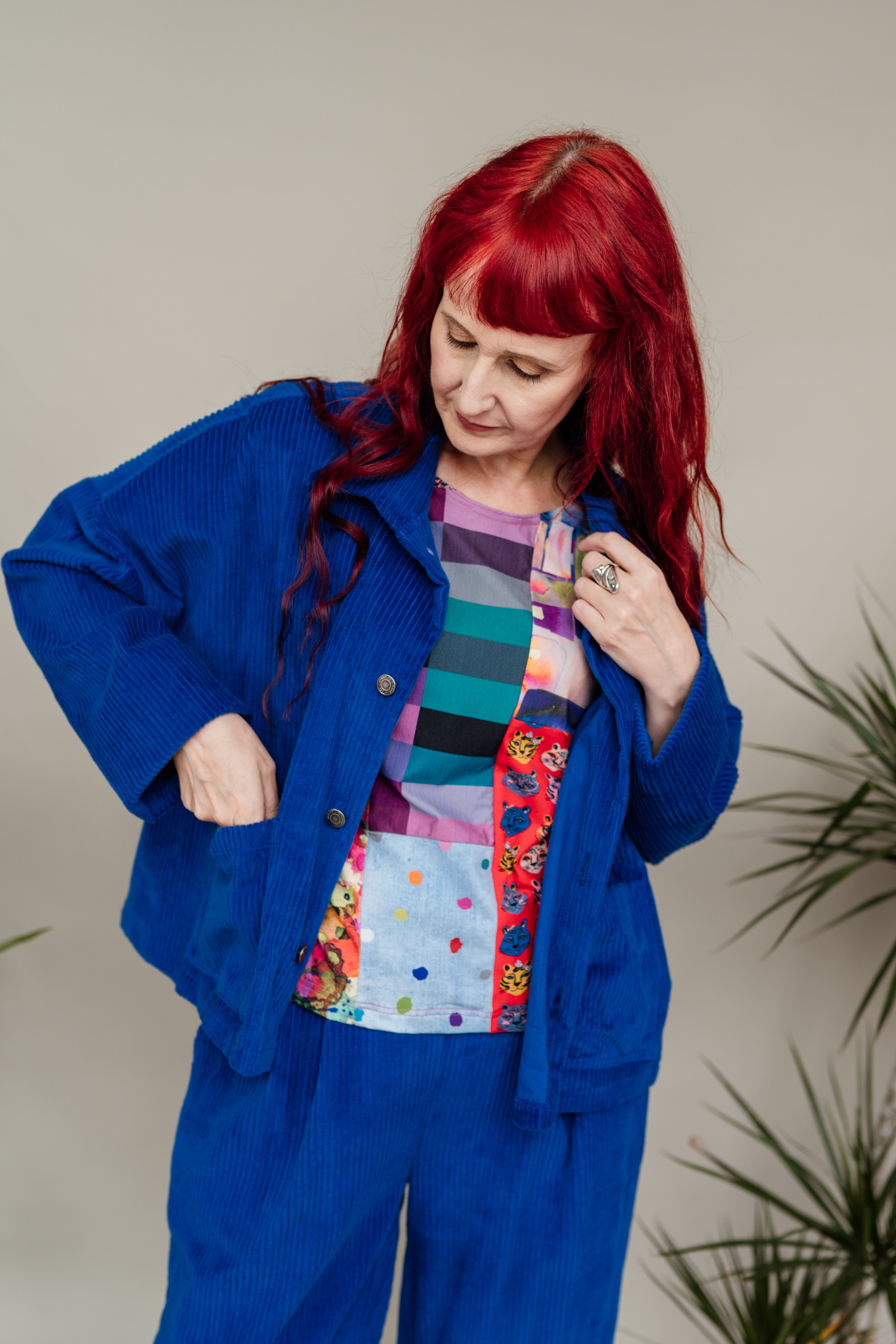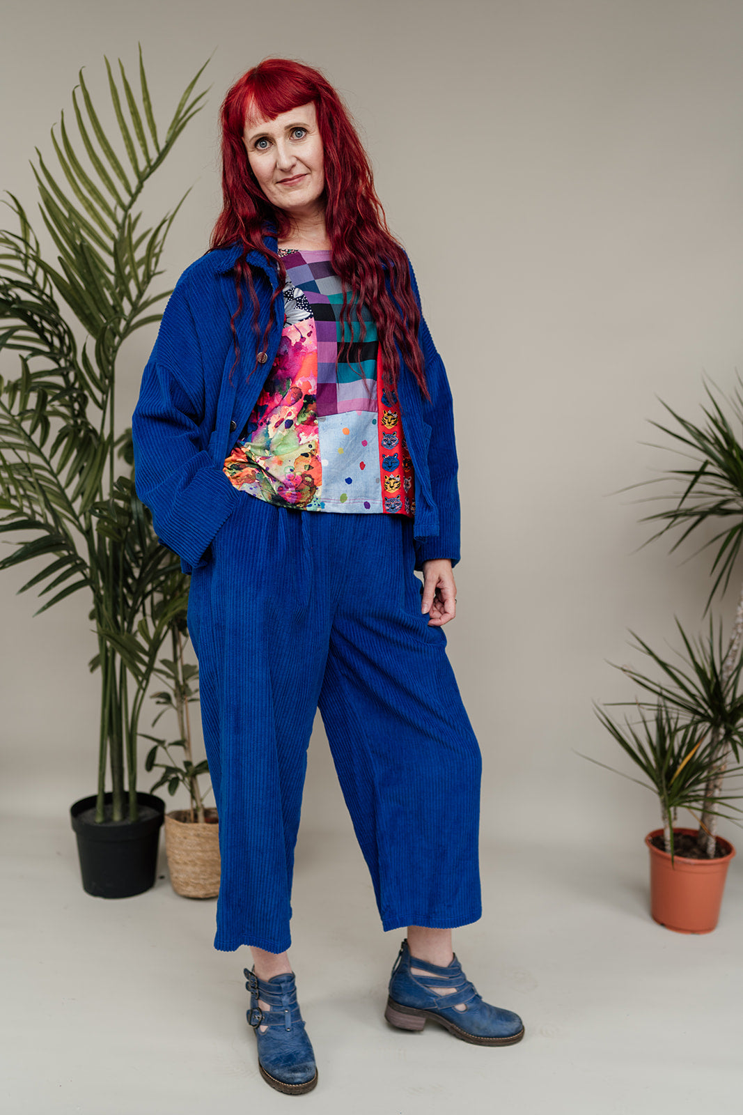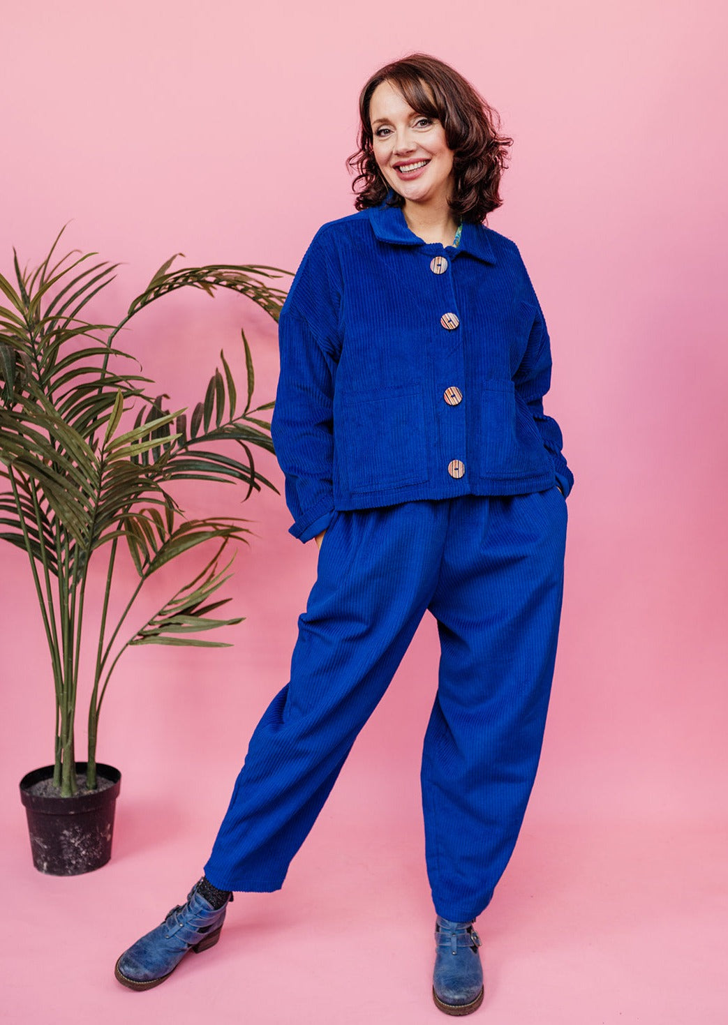 Styled with Ankle Grazer Trousers in Royal Blue Cord