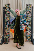Handmade jacket in the most magical glitter fabric! Perfect for weddings and special occasions, these jackets are truly remarkable! Tie belt included to cinch in at the waist and it has pockets too!