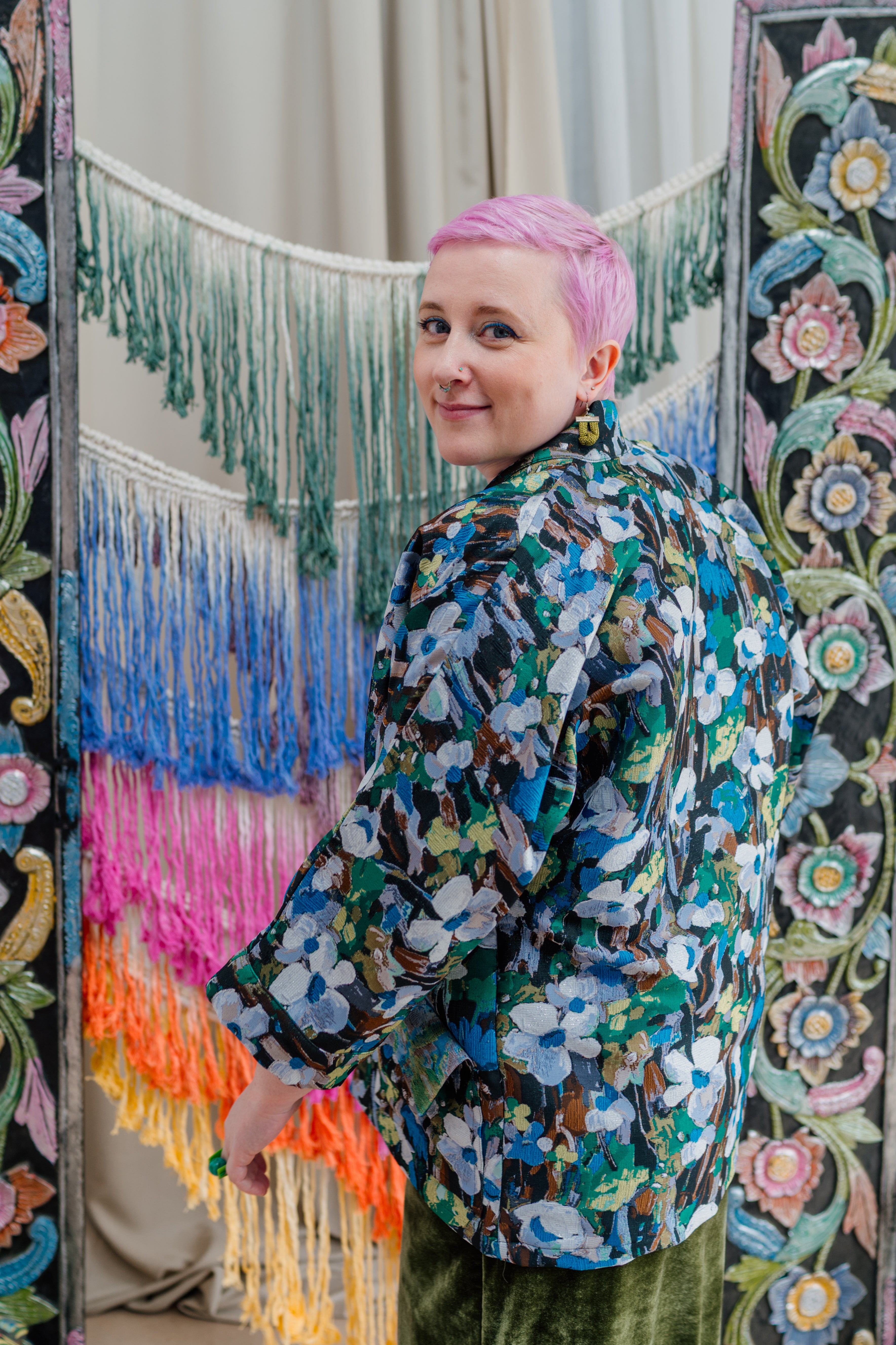 Handmade jacket in the most glorious floral fabric! Perfect for weddings and special occasions, these jackets are truly remarkable!