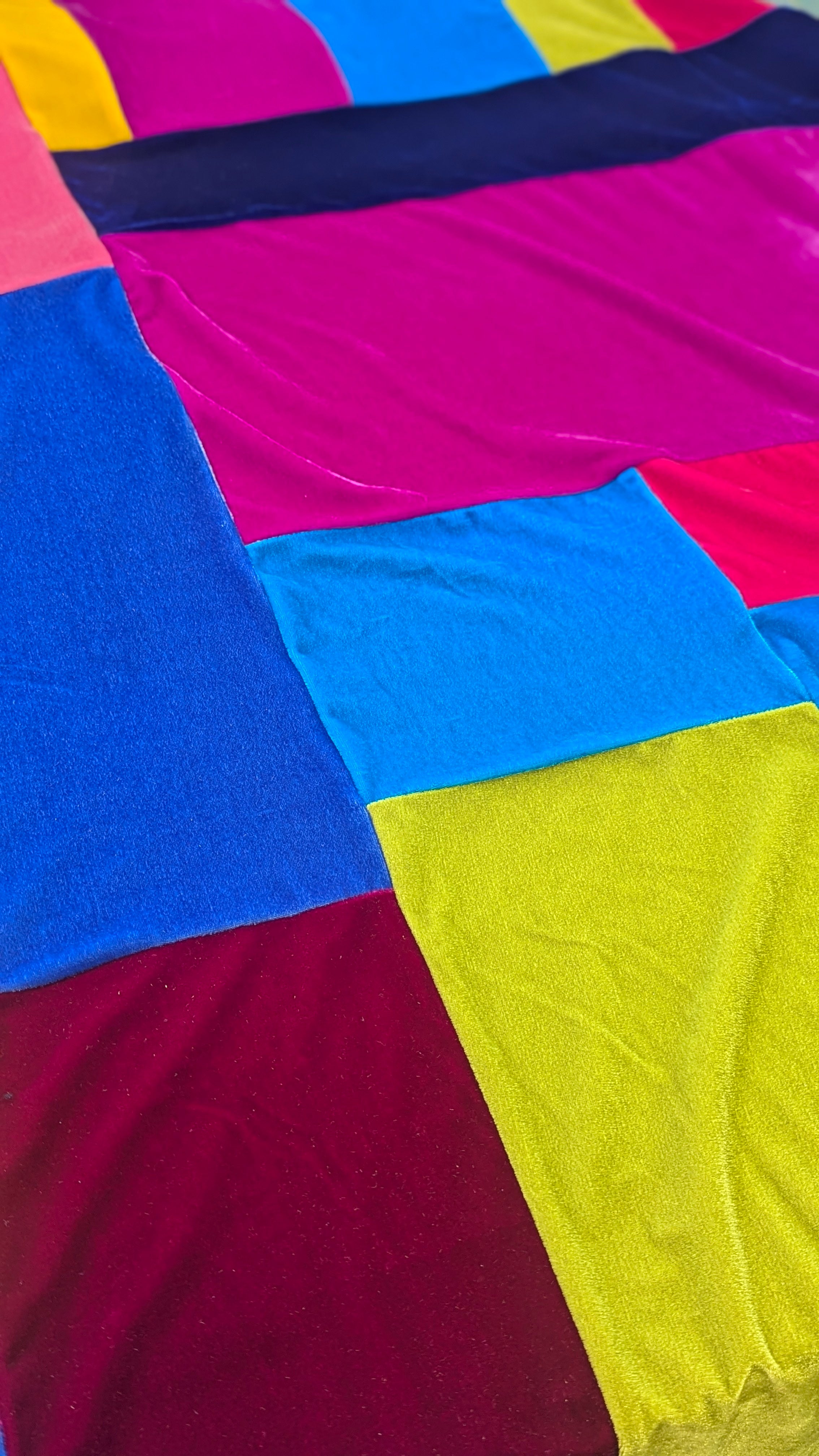 Handmade jacket in the most luxuriously soft velvet. Perfect for layering through the seasons or dressing up for a special occasion! This patchwork beauty is 100% zero waste!