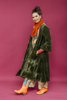 Velvet Ruffle Maxi Cardigan in Dark Olive