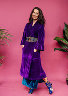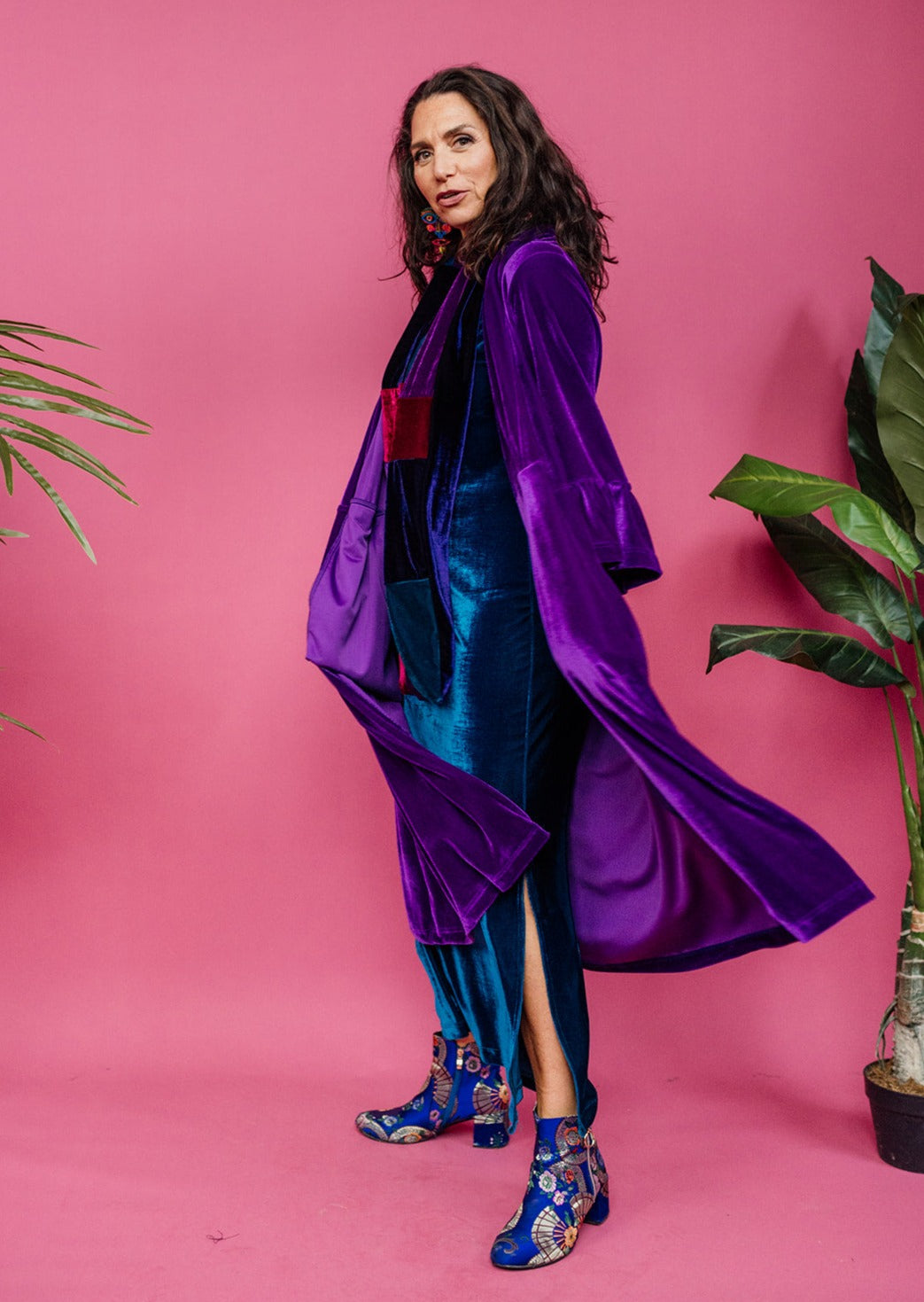 Styled with Patchwork Velvet Scarf in Purple and Blue