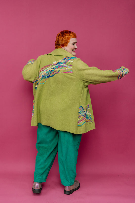 Embellished Short Wool Coat in Lime Green
