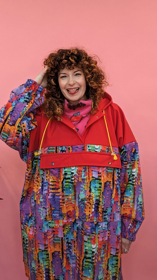 Rain Poncho in Red/Abstract Print