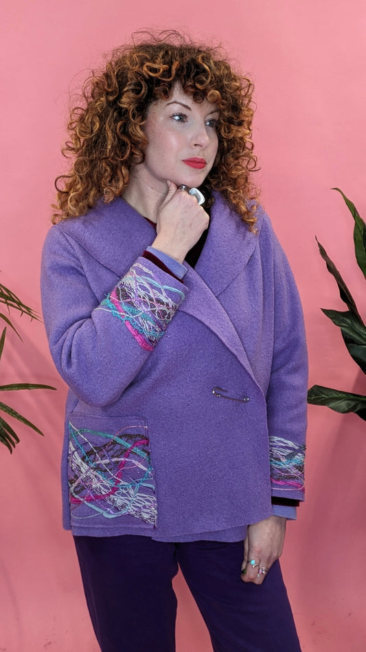 Embellished Cropped Wool Coat in Lilac