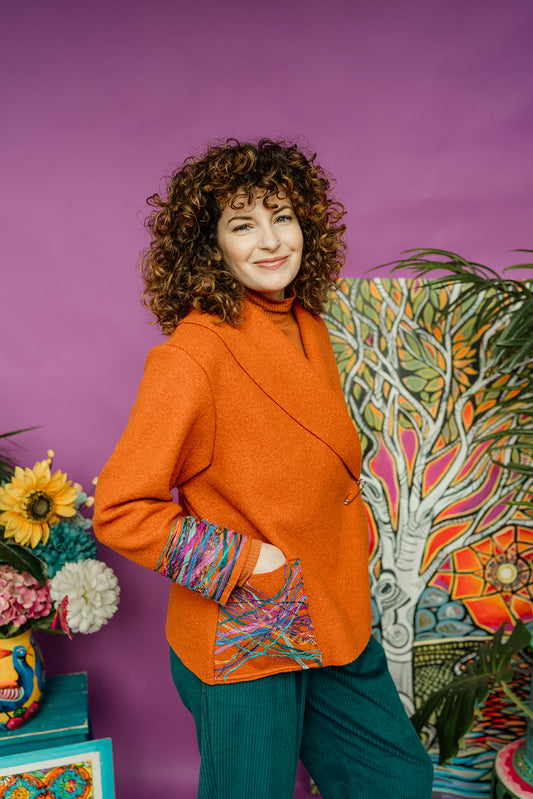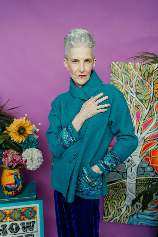 SALE - Cropped Watercolour Boiled Wool Coat XS, S, M