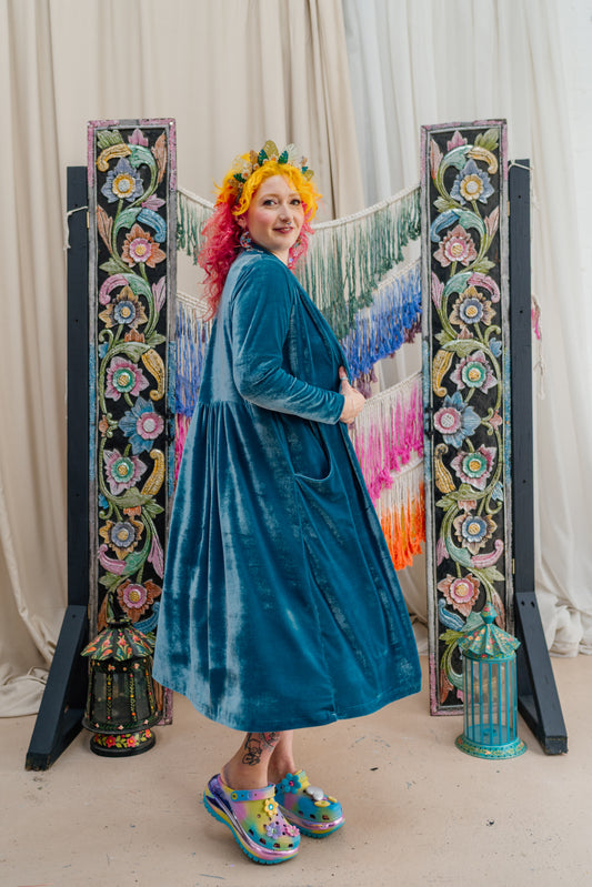SALE - Lined Shawl Kimono in Purple & Teal O/S