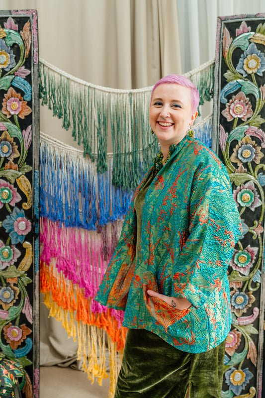 Kimono Jacket in Blue and Copper