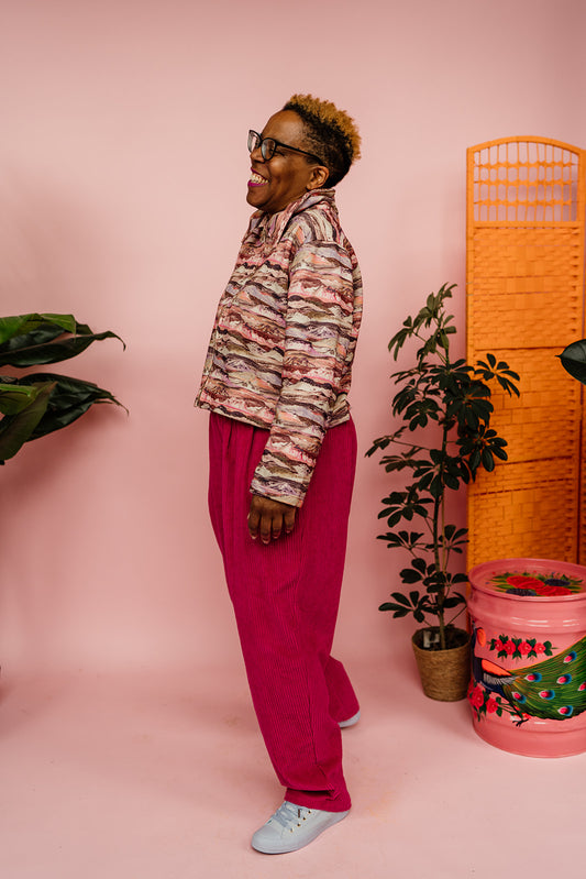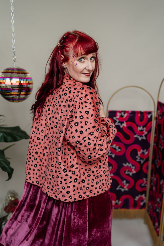 SALE - Corduroy Cropped Chore Jacket in Pink Leopard M, L, 2XL