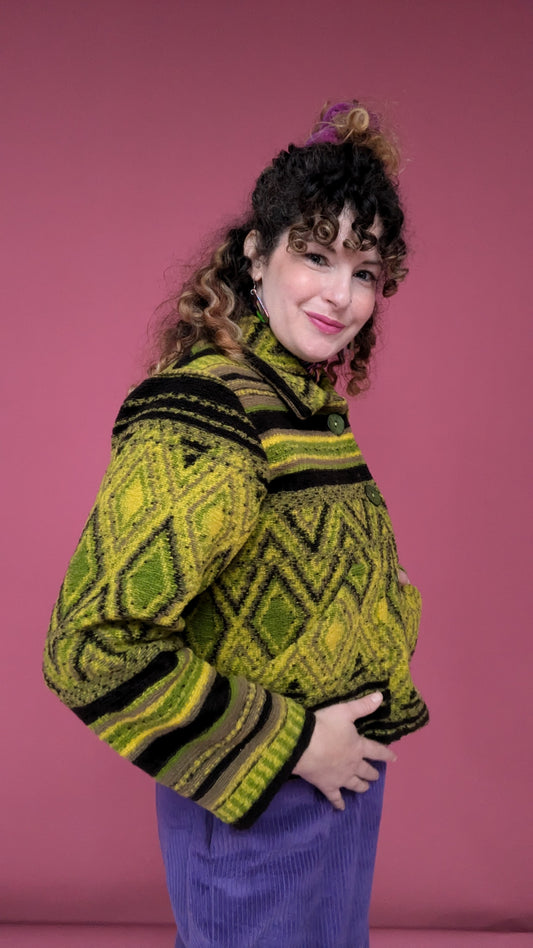 Knitted Box Jacket in Olive Diamond