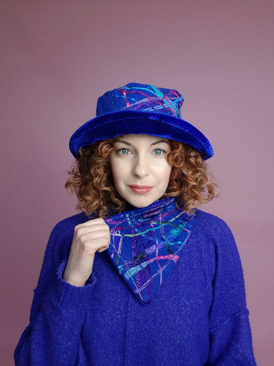 SALE Boiled Wool Brimmed Hat in Royal Blue