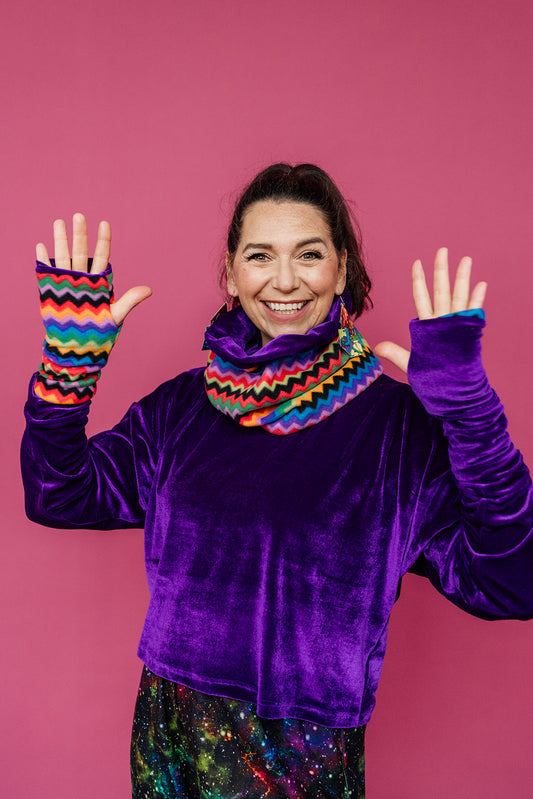 Reversible Fleece & Velvet Snood in Rainbow Chevron