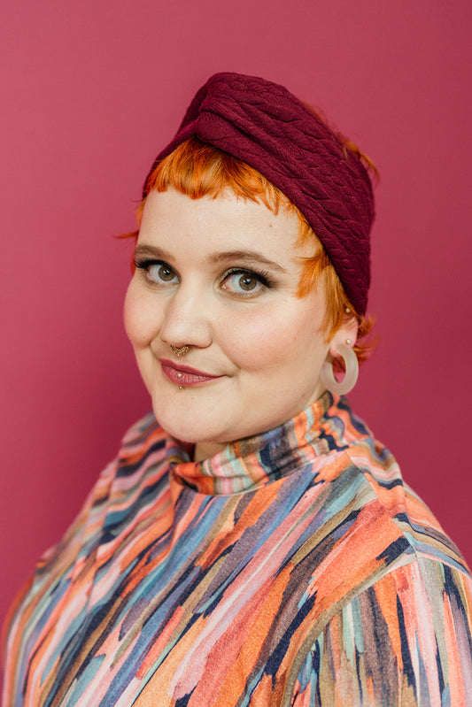 Cable Knit Jersey Headband in Burgundy