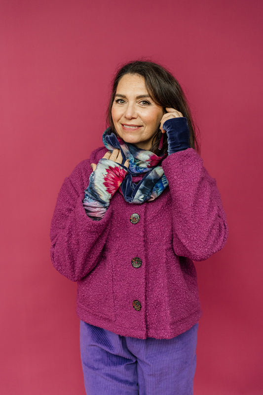 Velvet Cowl and Wrist Warmers Set in Turquoise