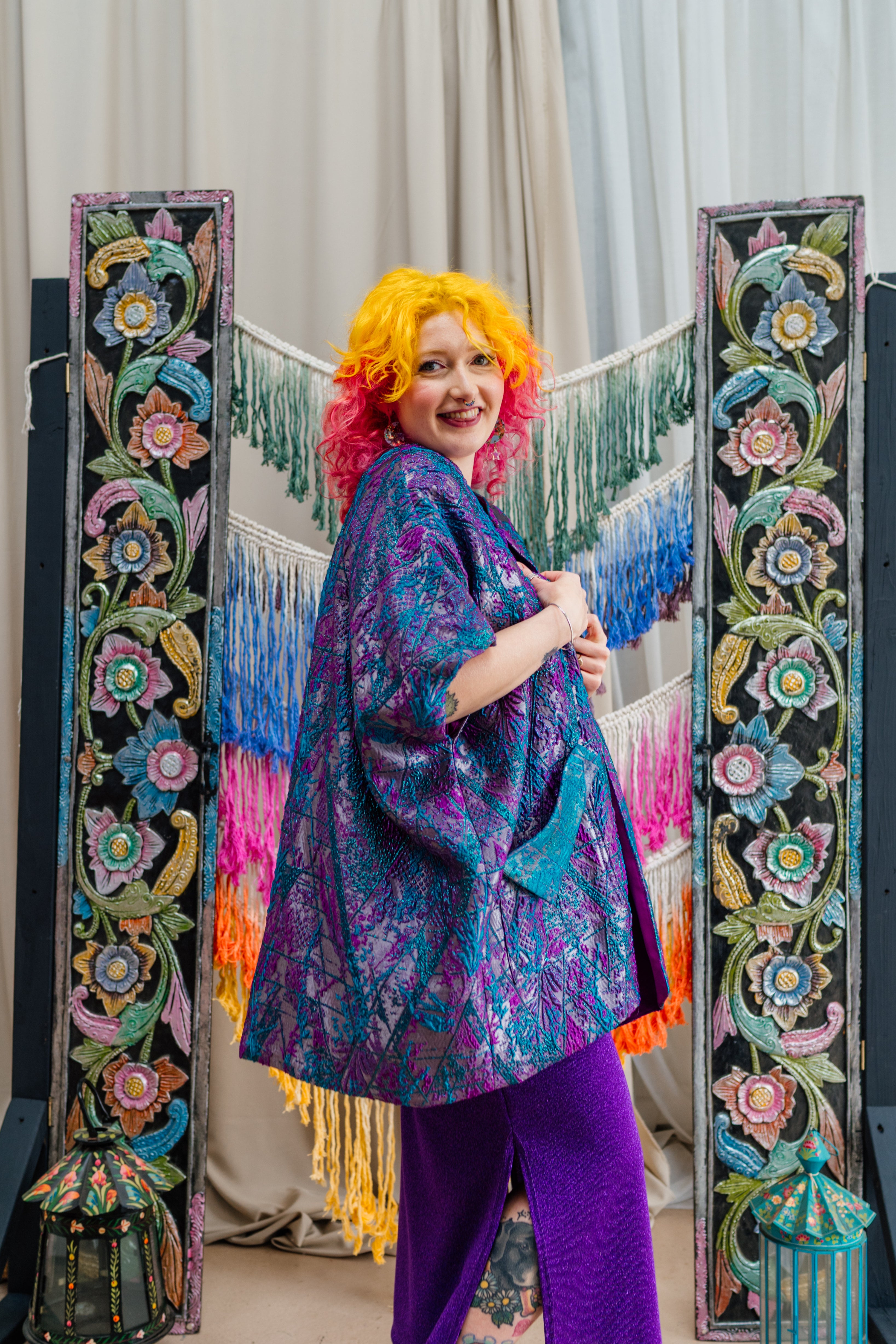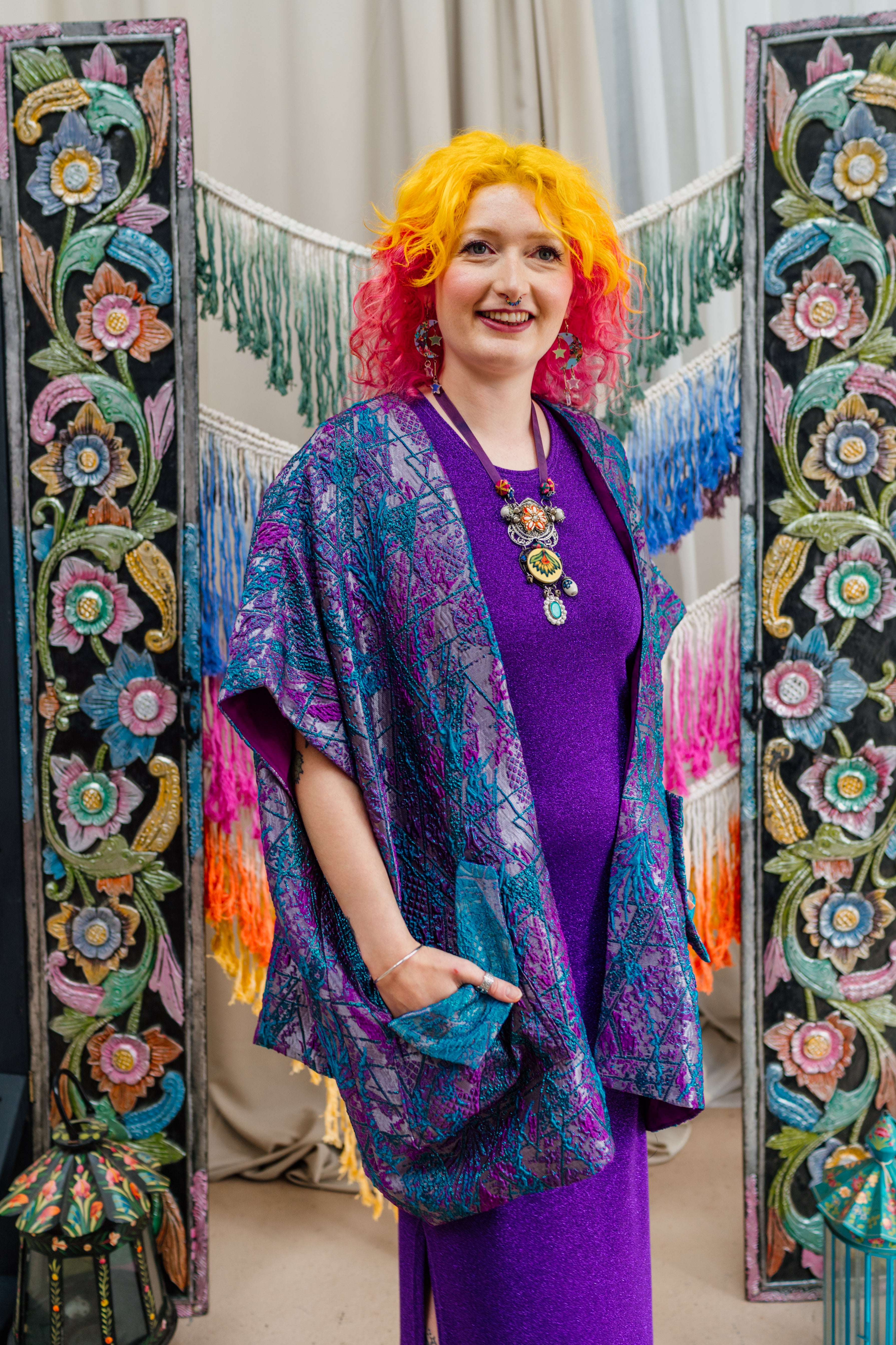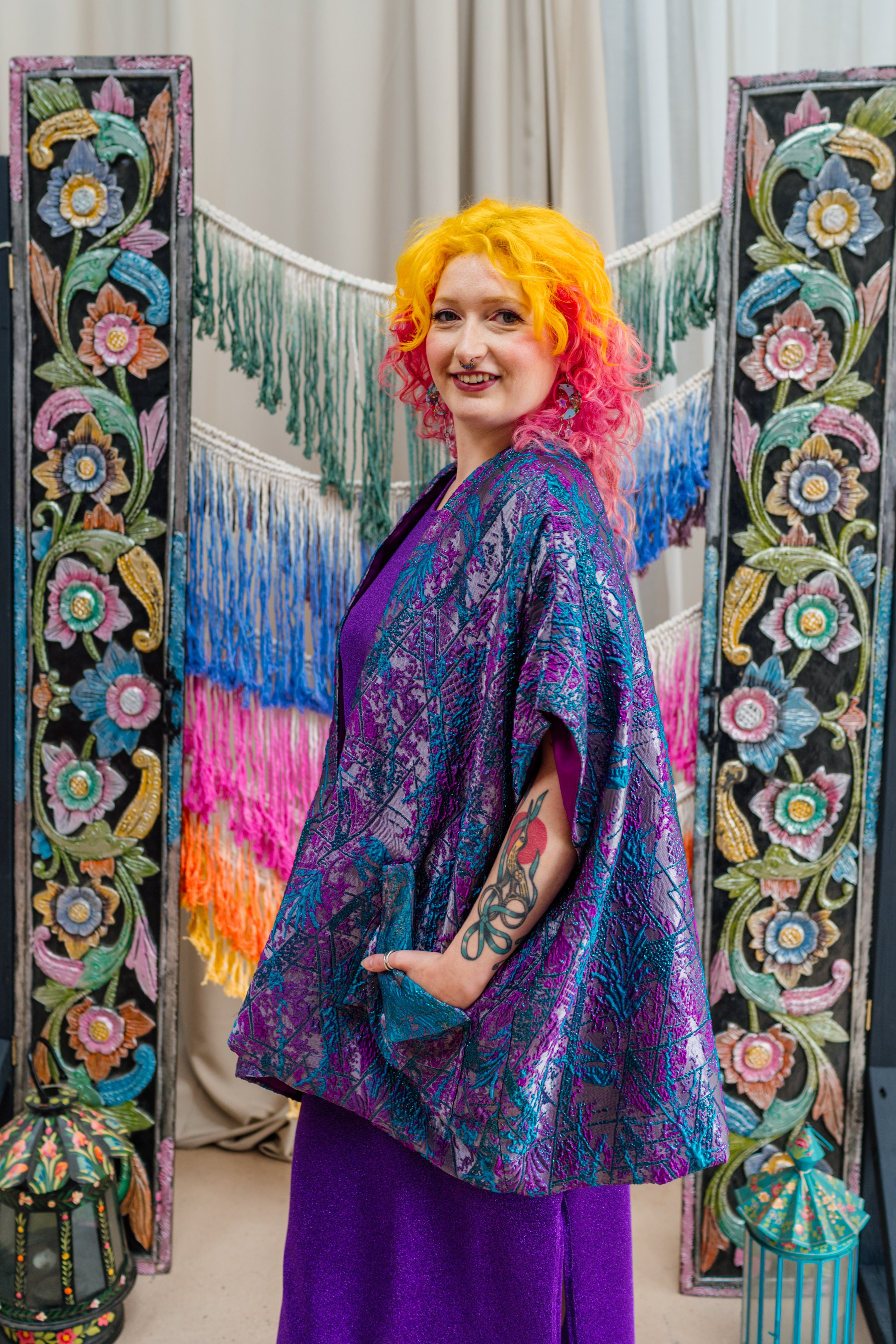 SALE - Lined Shawl Kimono in Purple & Teal O/S