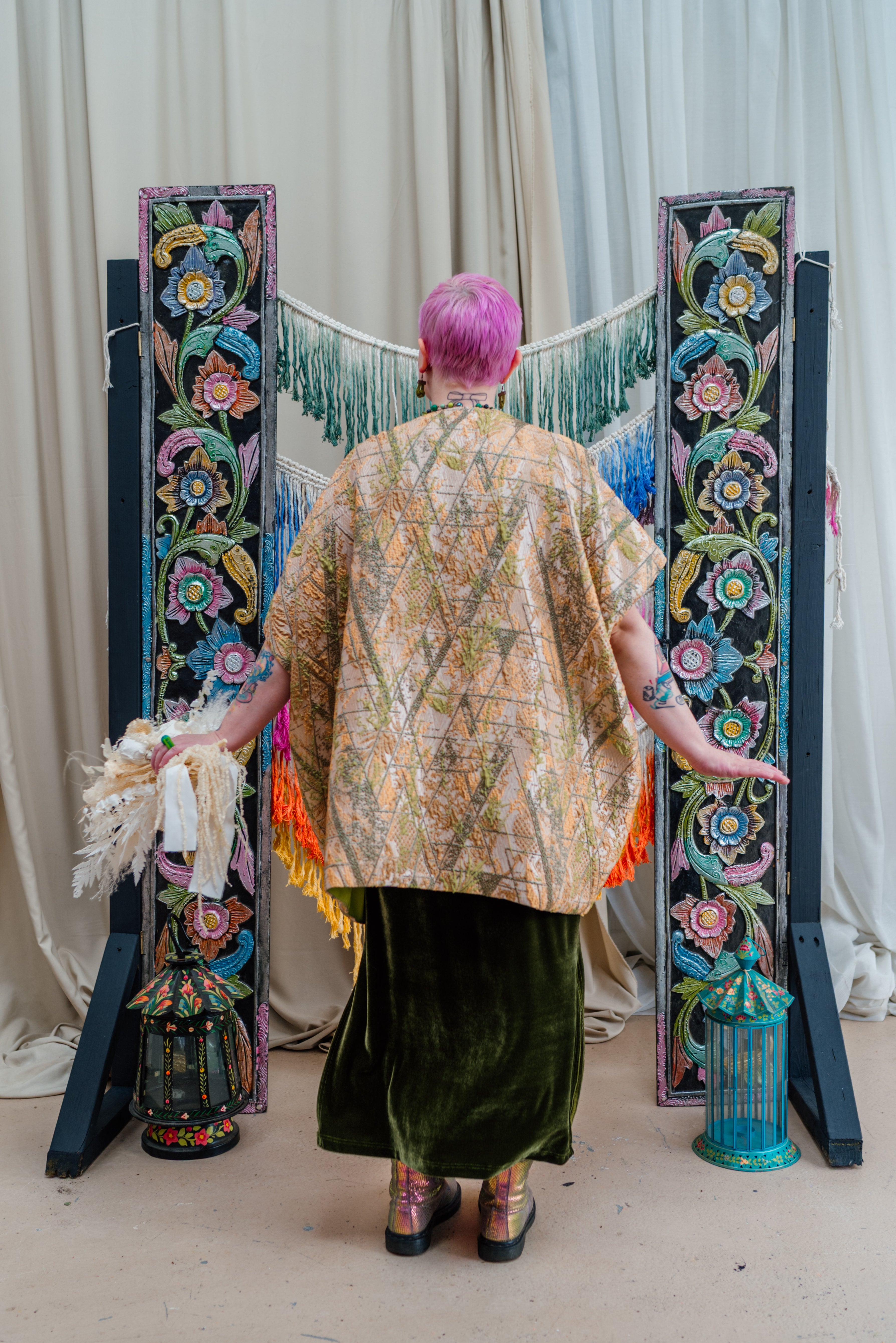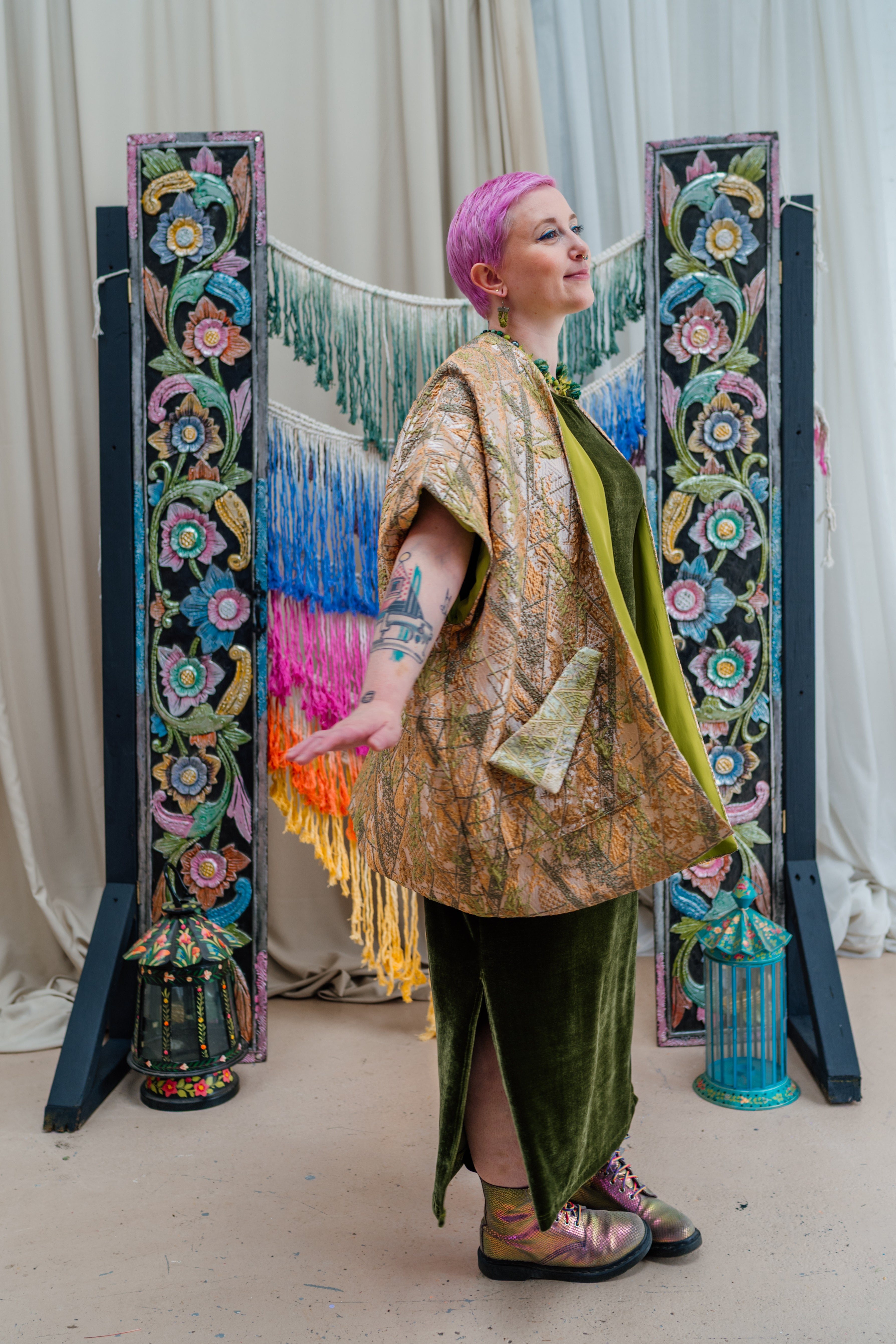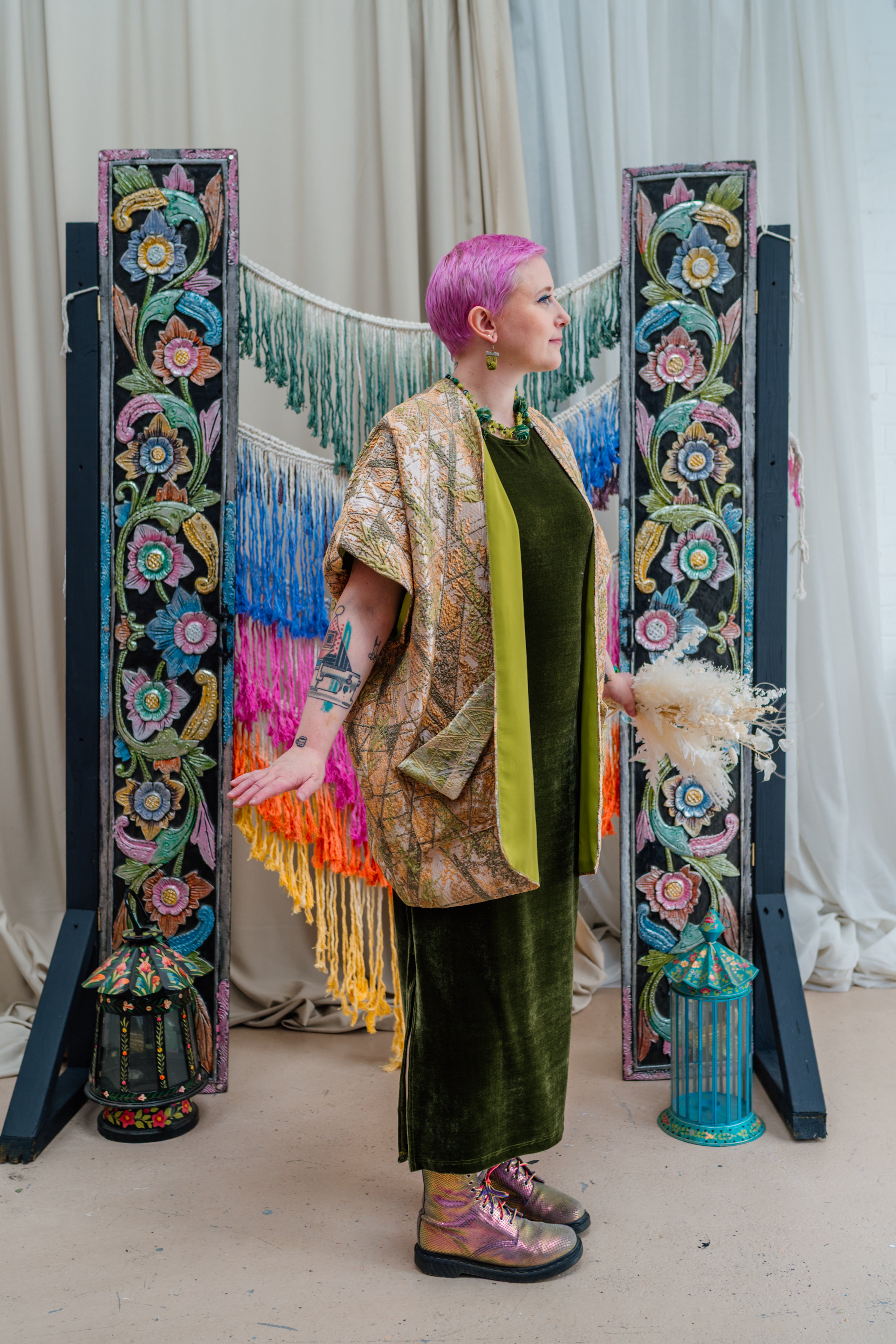 SALE - Lined Shawl Kimono in Purple & Teal O/S