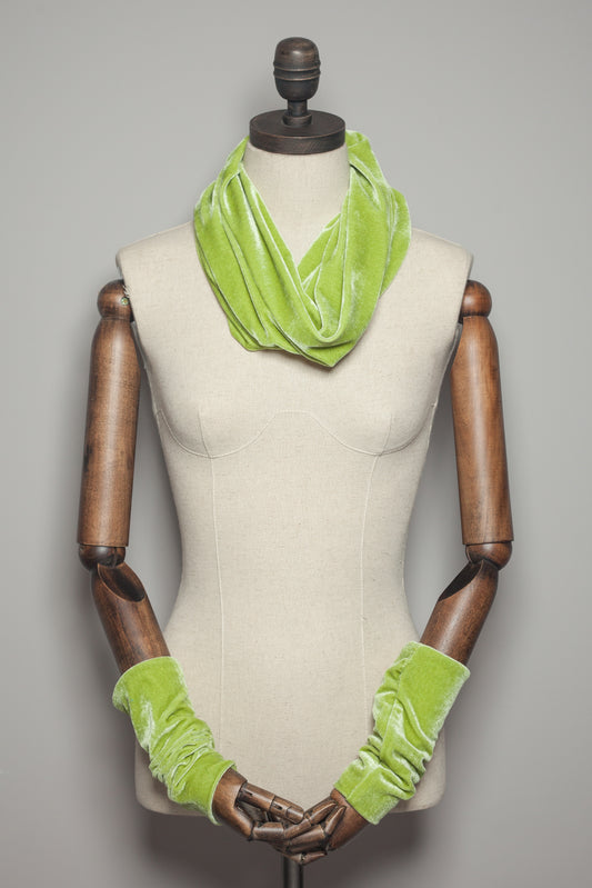 Velvet Cowl and Wrist Warmers Set in Orchid