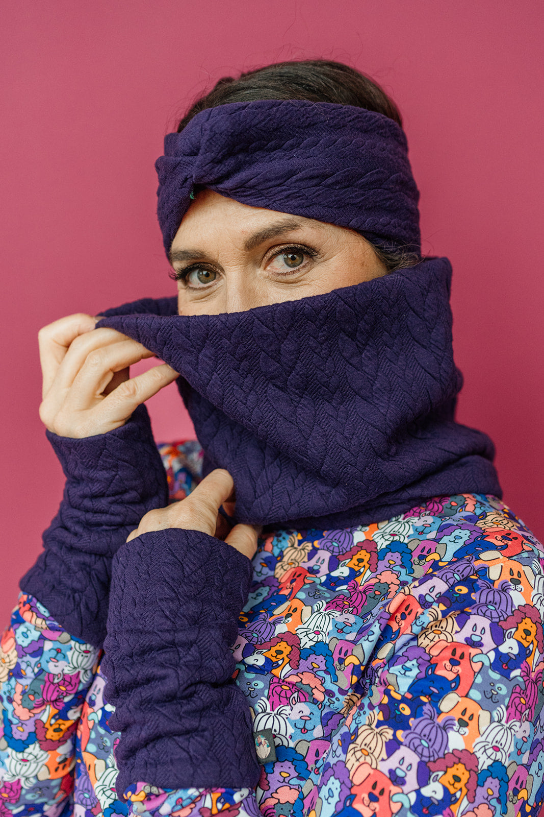 Get snuggly with this super soft cable knit style fabric cowl. A beautiful colour pop to any outfit! Fits over the head and drape beautifully around the neck. Can be worn as a hood, worn over the nose for a temporary face covering or as a cowl style scarf.
